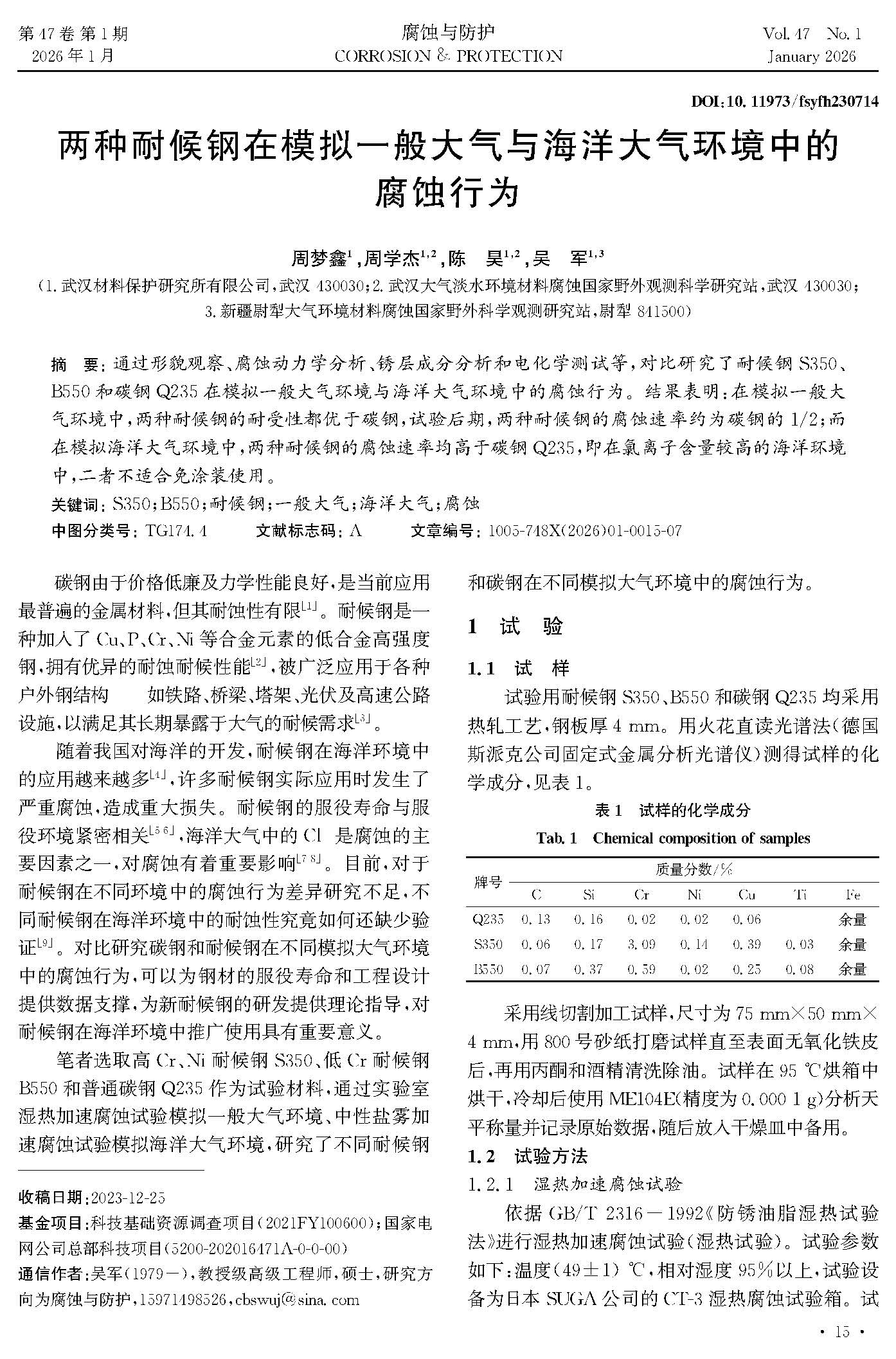 两种耐候钢在模拟一般大气与海洋大气环境中的腐蚀行为
