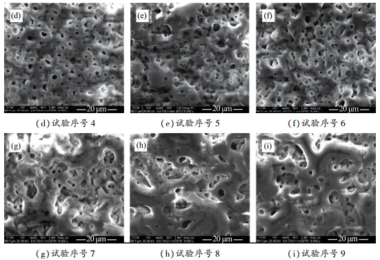 稀土镁合金微弧氧化工艺 设计及其耐蚀性能研究 周 洋1, 王腾达1,2, 赵延飞1, 李龙博1 (1. 中国船舶集团有限公司第七二五研究所, 河南 洛阳 471023; 2. 海洋腐蚀与防护全国重点实验室, 河南 洛阳 471023) 摘 要:通过探究微弧氧化过程中电解液成分及电参数对VW63稀土镁合金表面氧化膜层的组织形貌、元素成分、厚度及粗糙度、硬度、耐蚀性能等的影响规律,揭示微弧氧化过程中膜层的生长特点,系统分析影响膜层综合性能的因素。结果表明,微弧氧化工艺的最佳电解液成分为25.0 g/L的硅酸钠、15.0g/L的氟化钠、15.0 g/L的氢氧化钠和15.0 g/L的三乙醇胺,最佳电参数为电压450 V、频率500 Hz、占空比20%、时间20 min。采用优化后的微弧氧化处理工艺制得的膜层厚度均匀,硬度可达到472HV0.01,膜层与基体的界面结合强度可达到50.0 MPa。与未经处理的镁合金相比,经微弧氧化处理的镁合金其耐蚀性能明显提高。 关键词:微弧氧化; 稀土镁合金; 耐蚀性能 文中主要图表 (序号为文中序号) 图1 不同主成膜剂制得膜层的 宏观形貌 图2 主成膜剂浓度与膜层厚度及 表面粗糙度的关系 表1 配方1成分正交试验因素 水平表 g/L 表2 配方1成分正交试验方案 图3 配方1成分正交试验样品的 膜层厚度及表面粗糙度 图4 配方1成分正交试验样品的 宏观形貌 图5 配方1成分正交试验样品的 微观形貌 表3 配方1成分正交试验样品的 化学成分(w) % 表4 配方2成分正交试验因素 水平表 g/L 表5 配方2成分正交试验方案 图6 配方2成分与膜层厚度及表面 粗糙度的关系 图7 配方2成分正交试验样品的 宏观形貌 图8 配方1成分、配方2成分正交 试验样品的膜层厚度及表面粗糙度 图9 配方1、配方2制得典型样品 截面的SEM图像 表6 优选配方2电参数正交试验 因素水平表 表7 优选配方2电参数正交试验方案 图10 优选配方2电参数正交试验 样品的膜层厚度及表面粗糙度 图11 优化后微弧氧化工艺制得 膜层的厚度 表8 优化后微弧氧化工艺制得 膜层的硬度 表9 优化后微弧氧化工艺制得膜层 与基体的界面结合强度 MPa 图12 微弧氧化处理前后试样经盐雾 试验后的表面形貌 图13 微弧氧化处理前后试样的 动电位极化曲线 图14 微弧氧化处理前后试样的 Nyquist图 结 论 (1)采用单因素控制变量法及多组正交试验,研究主成膜剂、添加剂和电参数对VW63镁合金微弧氧化膜层性能的影响。以膜层厚度为试验指数,表面粗糙度为参考试验指数,同时兼顾电解液试验寿命及工艺适应性窗口宽度,得出微弧氧化工艺的最佳电解液成分为25.0 g/L的硅酸钠、15.0 g/L的氟化钠、15.0 g/L的氢氧化钠和15.0 g/L 的三乙醇胺,最佳电参数为电压450 V、频率500 Hz、占空比20%、时间20 min。 (2)经过最佳微弧氧化工艺处理后,制得膜层的厚度为23.0~27.0 μm,且分布均匀;膜层的硬度平均值为472HV0.01,与镁合金基体的112HV0.01相比显著提高;膜层与基体间的界面结合强度平均值为50.0 MPa,结合情况良好。 (3)微弧氧化处理能显著降低镁合金基体的整体腐蚀速率,提高其耐蚀性能。这是由于微弧氧化在高温等离子放电状态下原位生成致密氧化层,能有效阻挡腐蚀介质与基体的接触。但在盐雾试验中,微弧氧化处理后的镁合金表面仍发生轻微腐蚀,且在长期浸泡条件下膜层会由于破损失去对基体的保护作用,这是因为微弧氧化膜层为多孔结构,腐蚀介质可通过贯穿孔接触镁合金基体,其本身的工艺特征决定了表面膜层残留较多缺陷,需继续对该多孔结构进行封孔处理,从而进一步提高膜层的腐蚀防护性能。