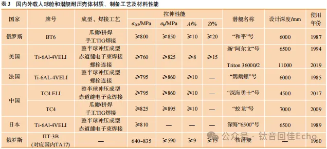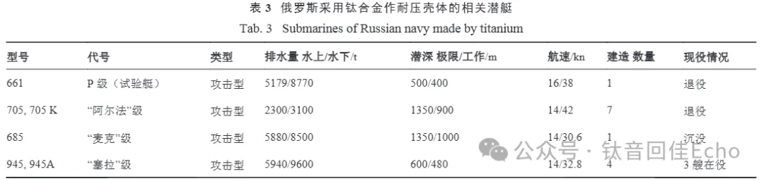 俄罗斯和美国是最早从事舰船用钛合金研究的国家,并形成了各自的舰船用钛合金体系。俄罗斯是目前唯一拥有全钛潜艇的国家。