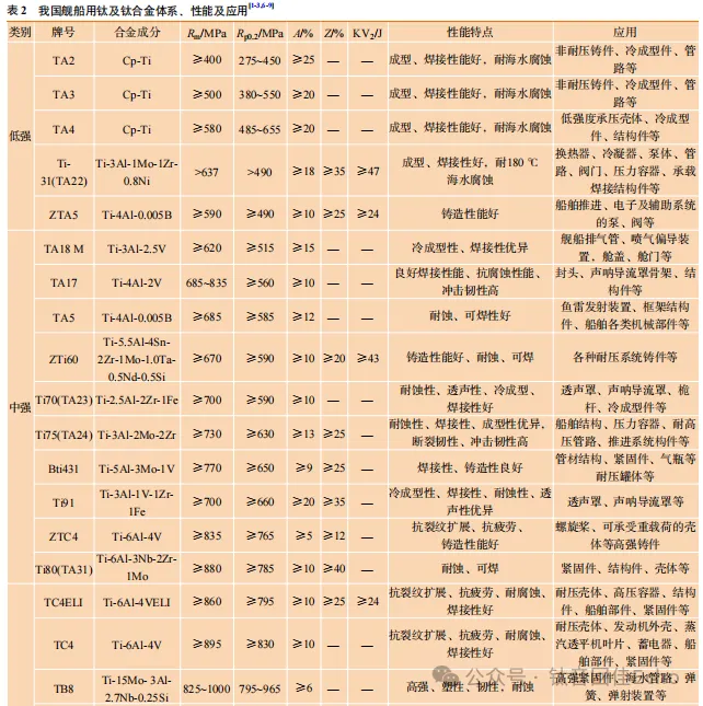 图 船舰用钛及钛合金牌号、体系、性能及应用