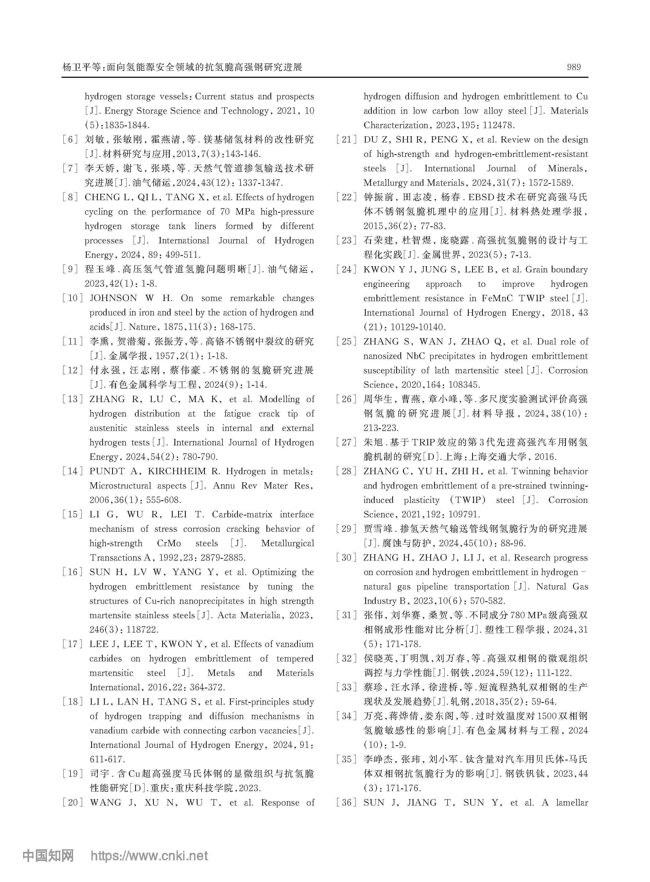 面向氢能源安全领域的抗氢脆高强钢研究进展