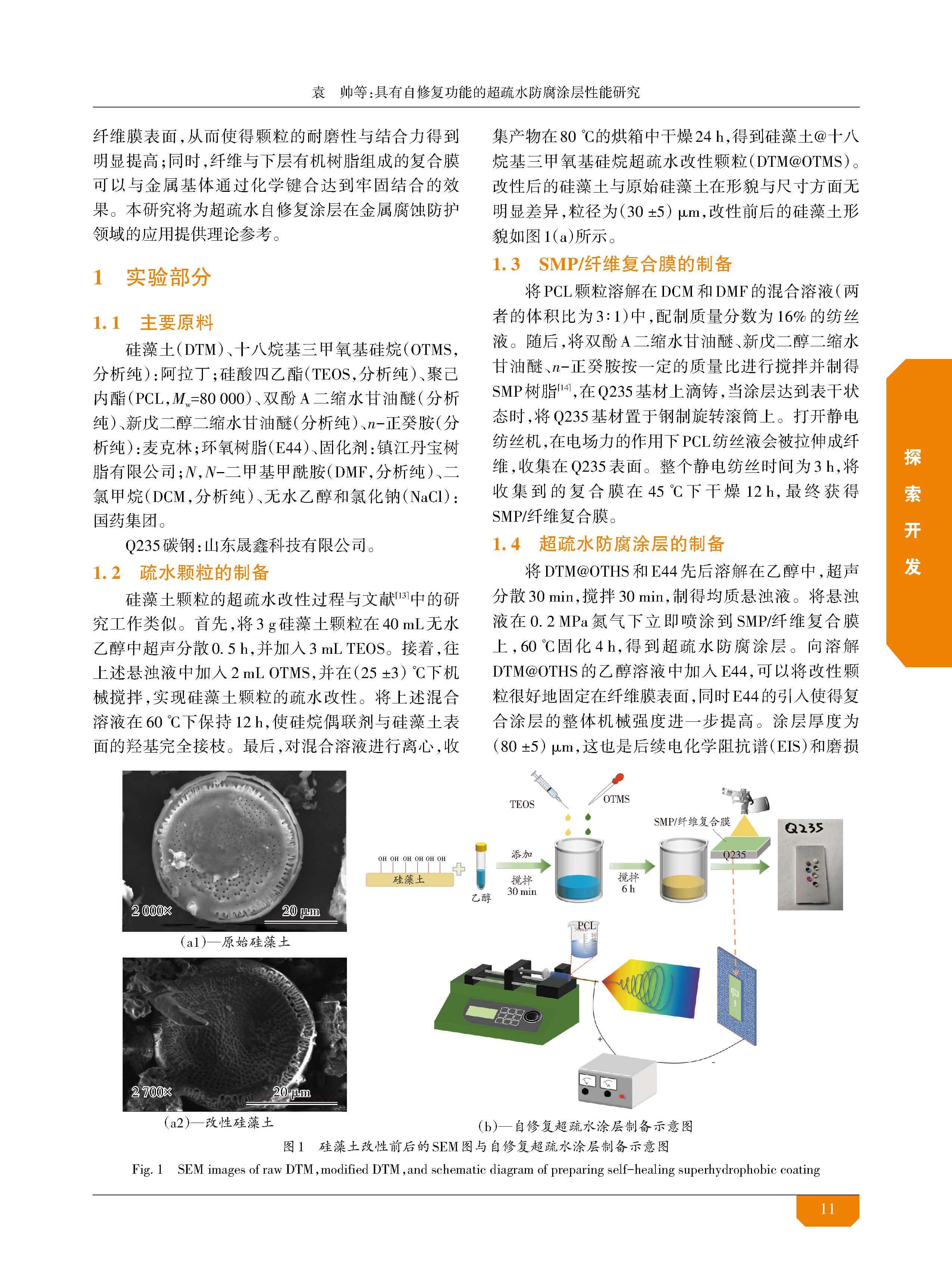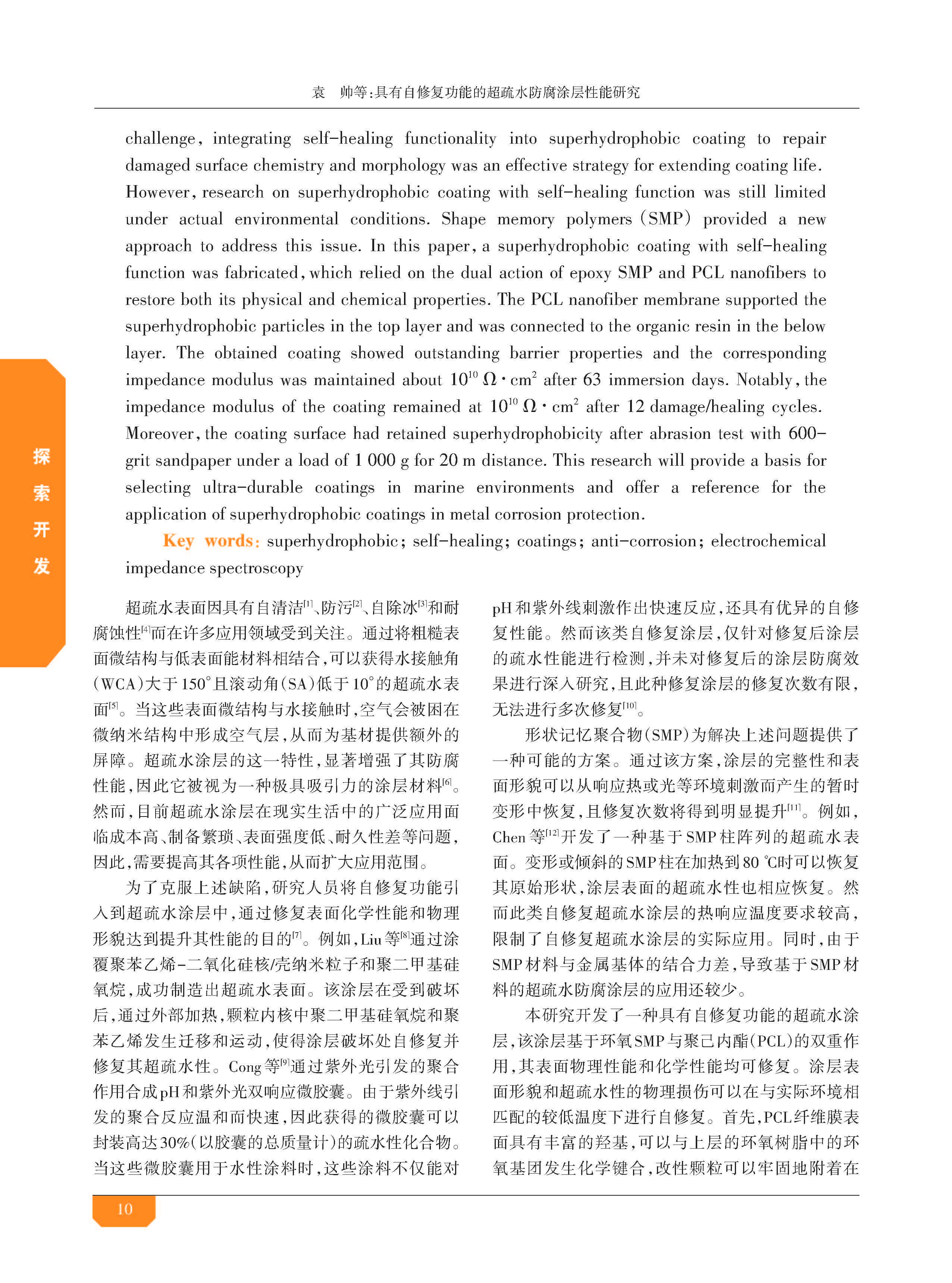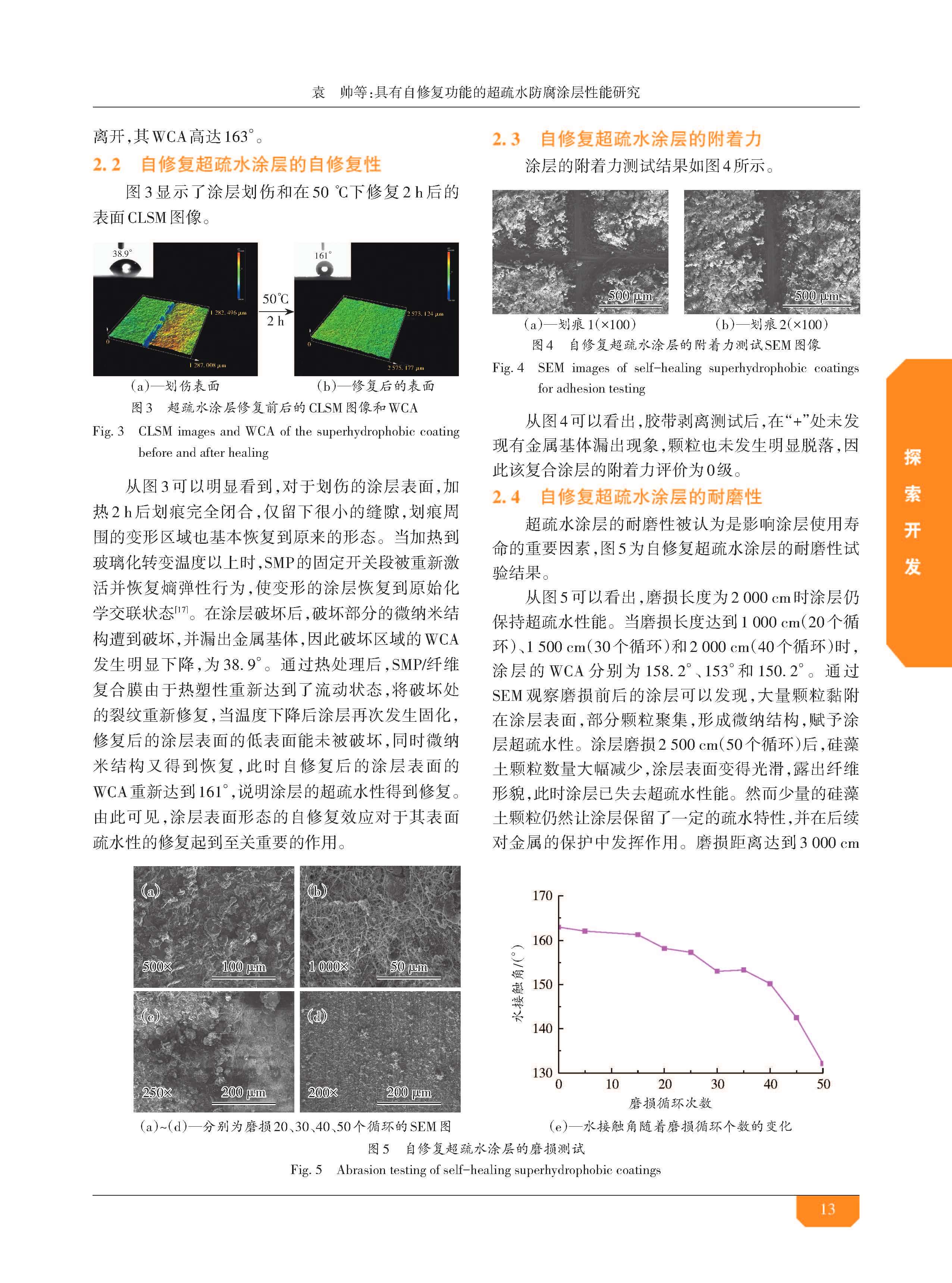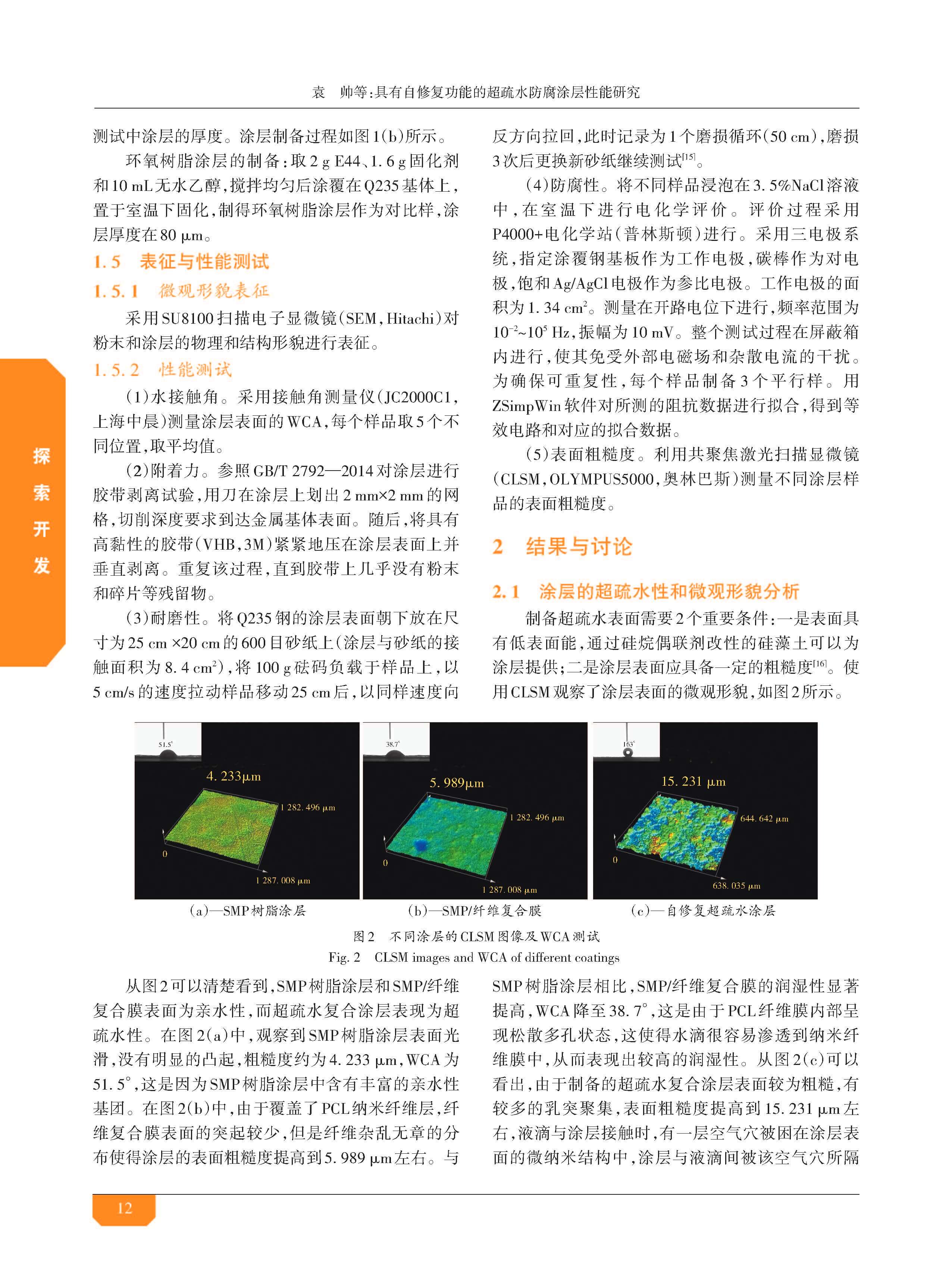 具有自修复功能的超疏水防腐涂层性能研究