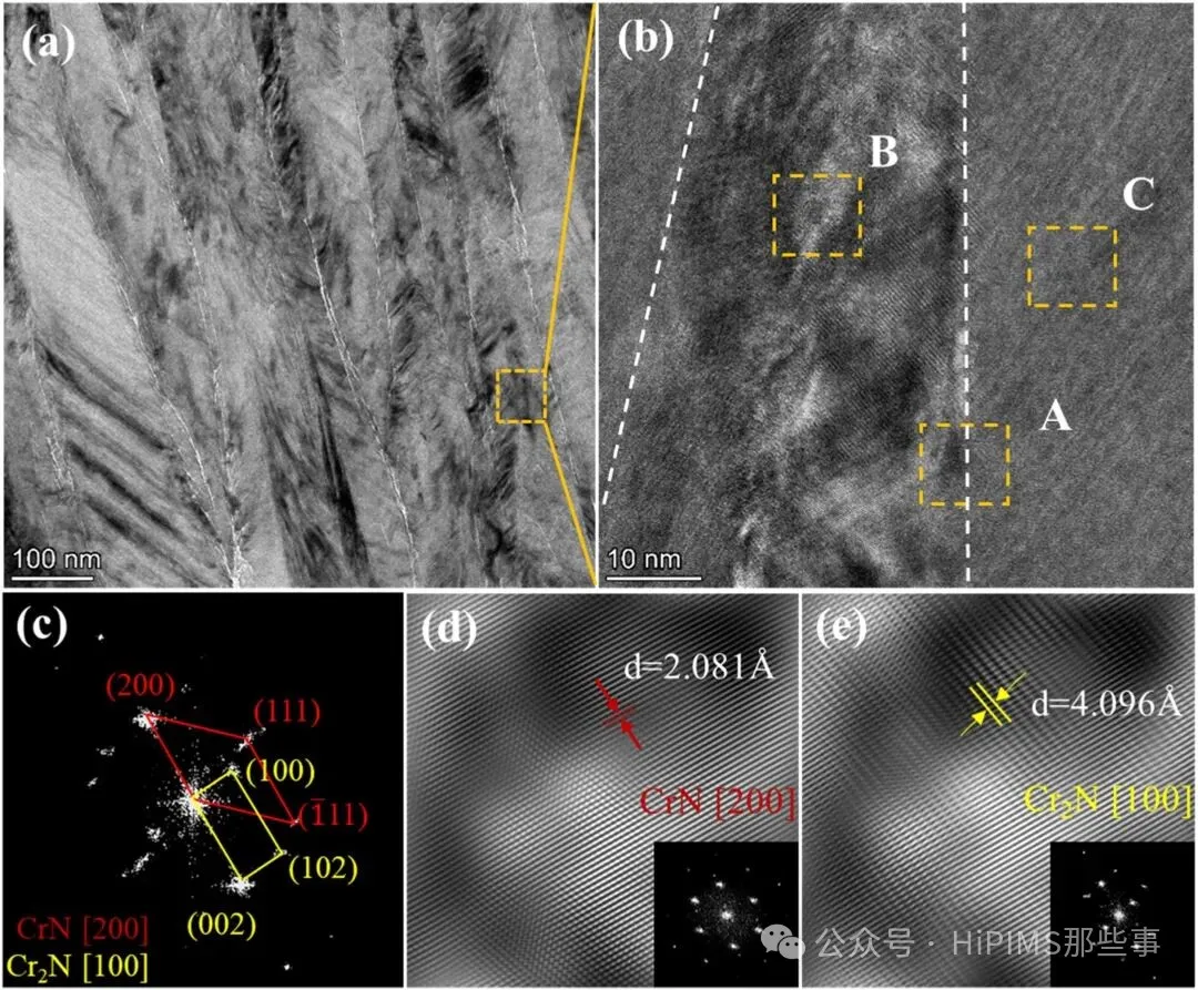 氮化铬(CrN) 基涂层以其高硬度、良好的耐磨性和出色的防腐蚀能力而闻名,已广泛应用于切削工具、模具等领域。CrN在摩擦过程中能形成富铬氧化物,起到固体润滑剂的作用,从而降低摩擦系数。HiPIMS与直流磁控溅射相比,具有更高的离化率和离子通量,能够制备出结构更致密、性能更优异的涂层。已有研究指出,HiPIMS技术制备的CrN涂层比DC技术制备的具有更高的杨氏模量和刚度。