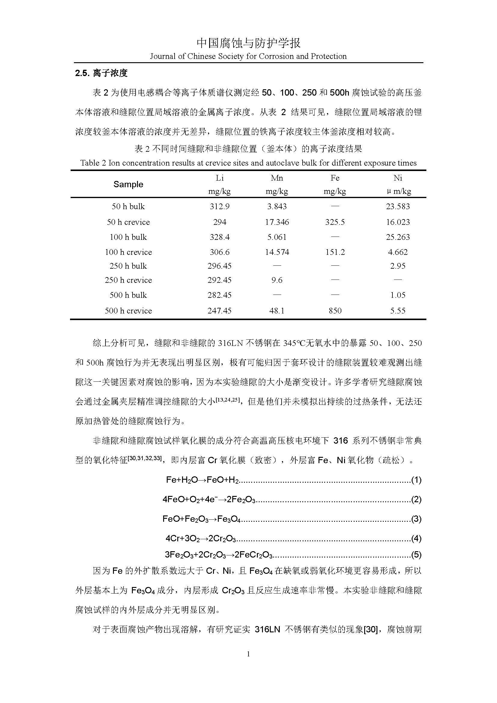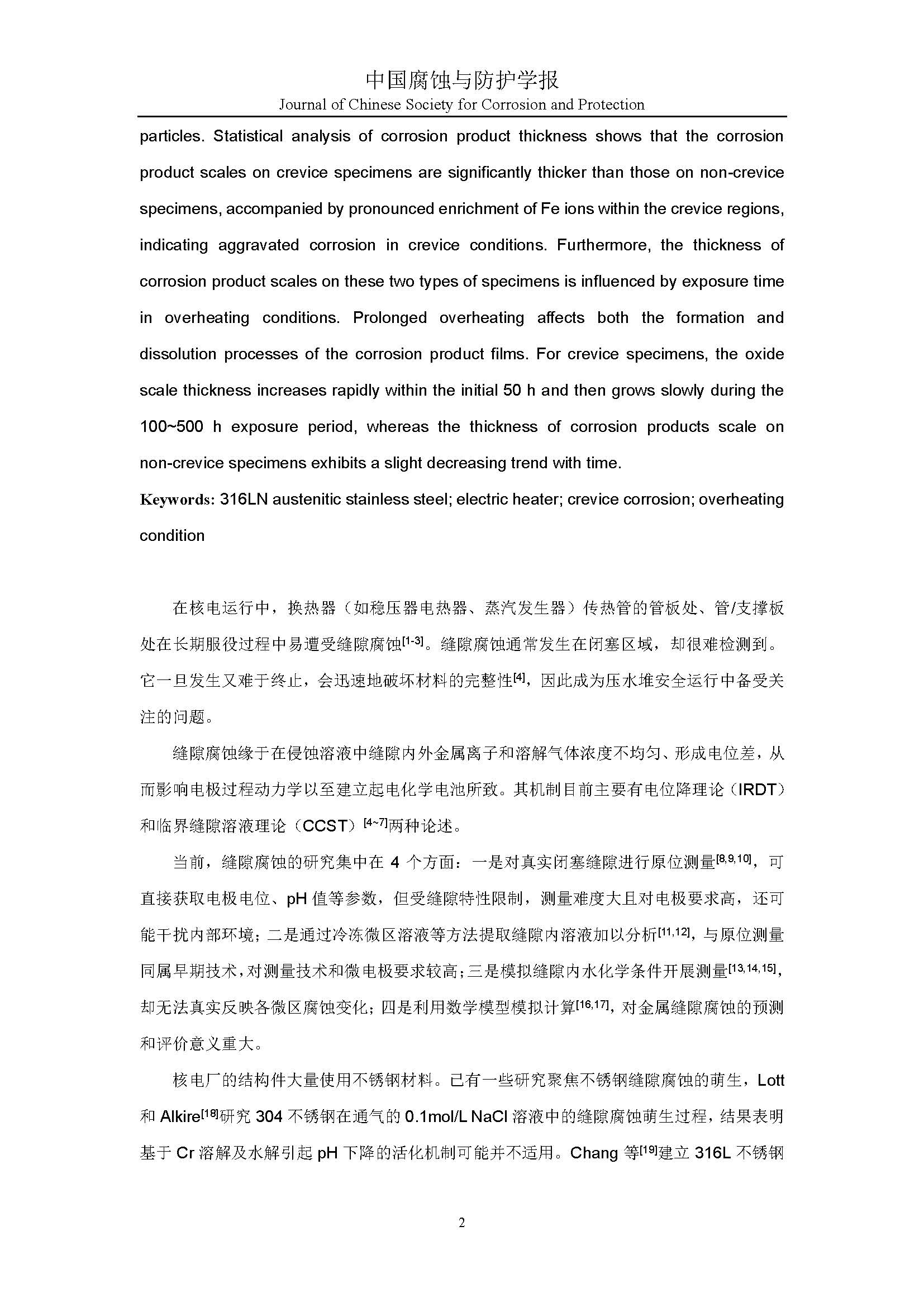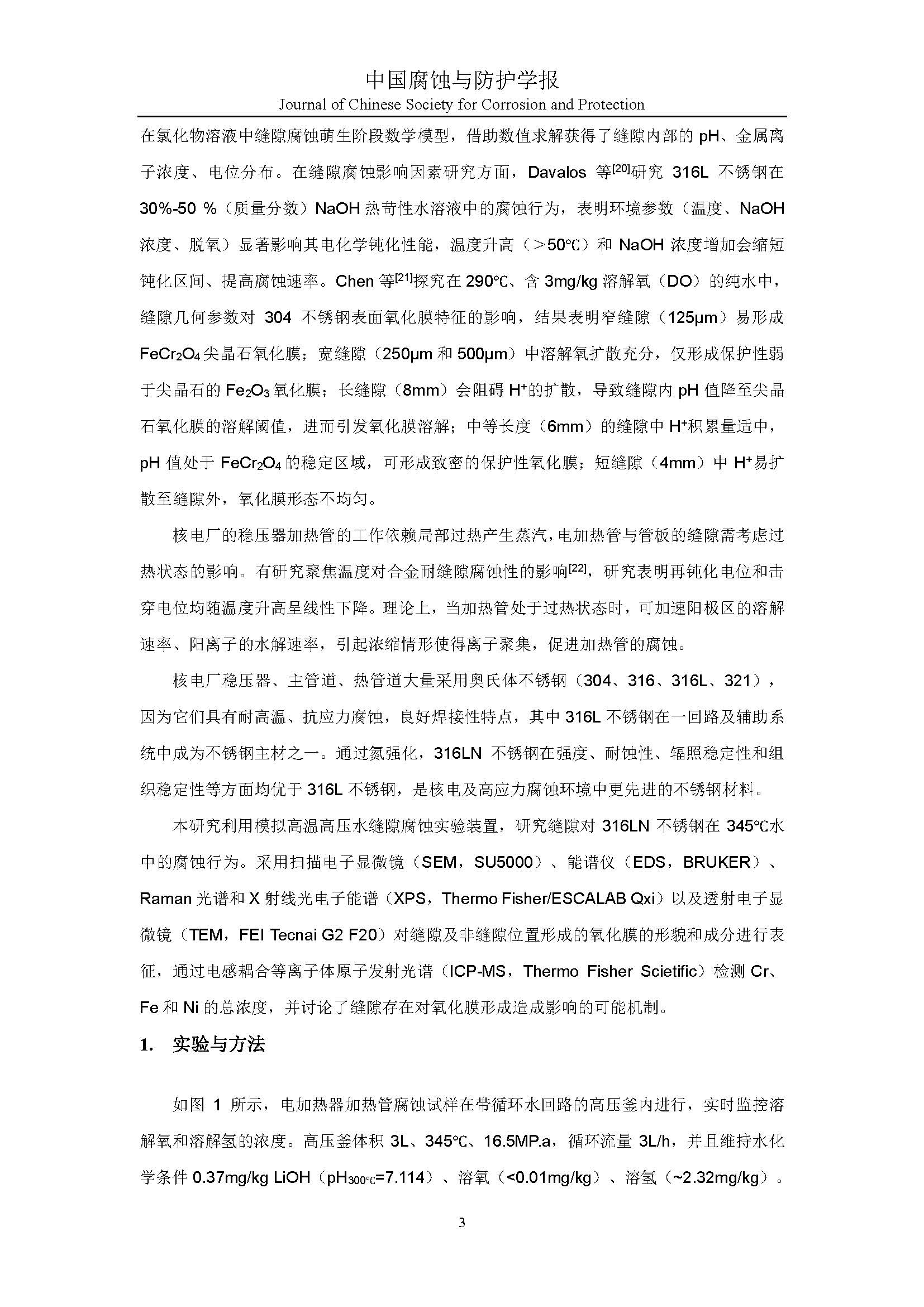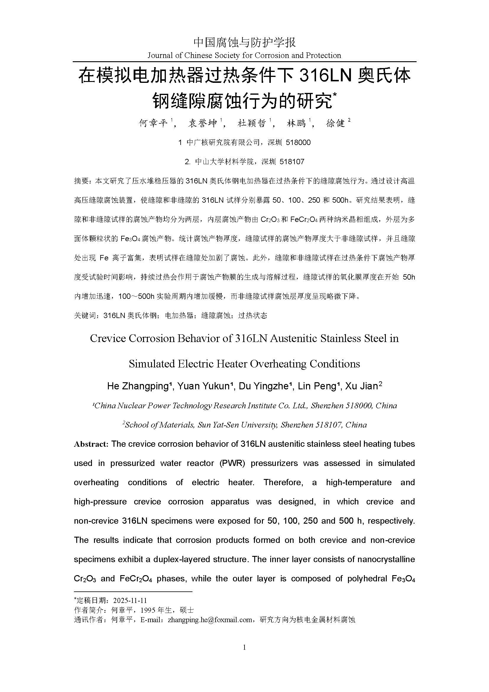 316LN奥氏体钢电加热器过热条件下的缝隙腐蚀行为研究