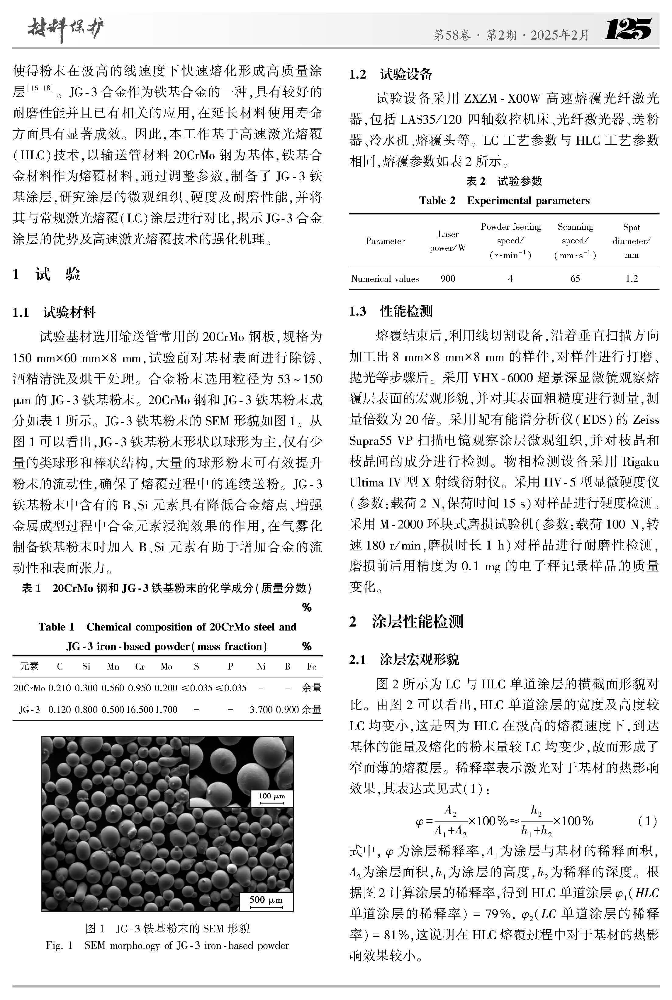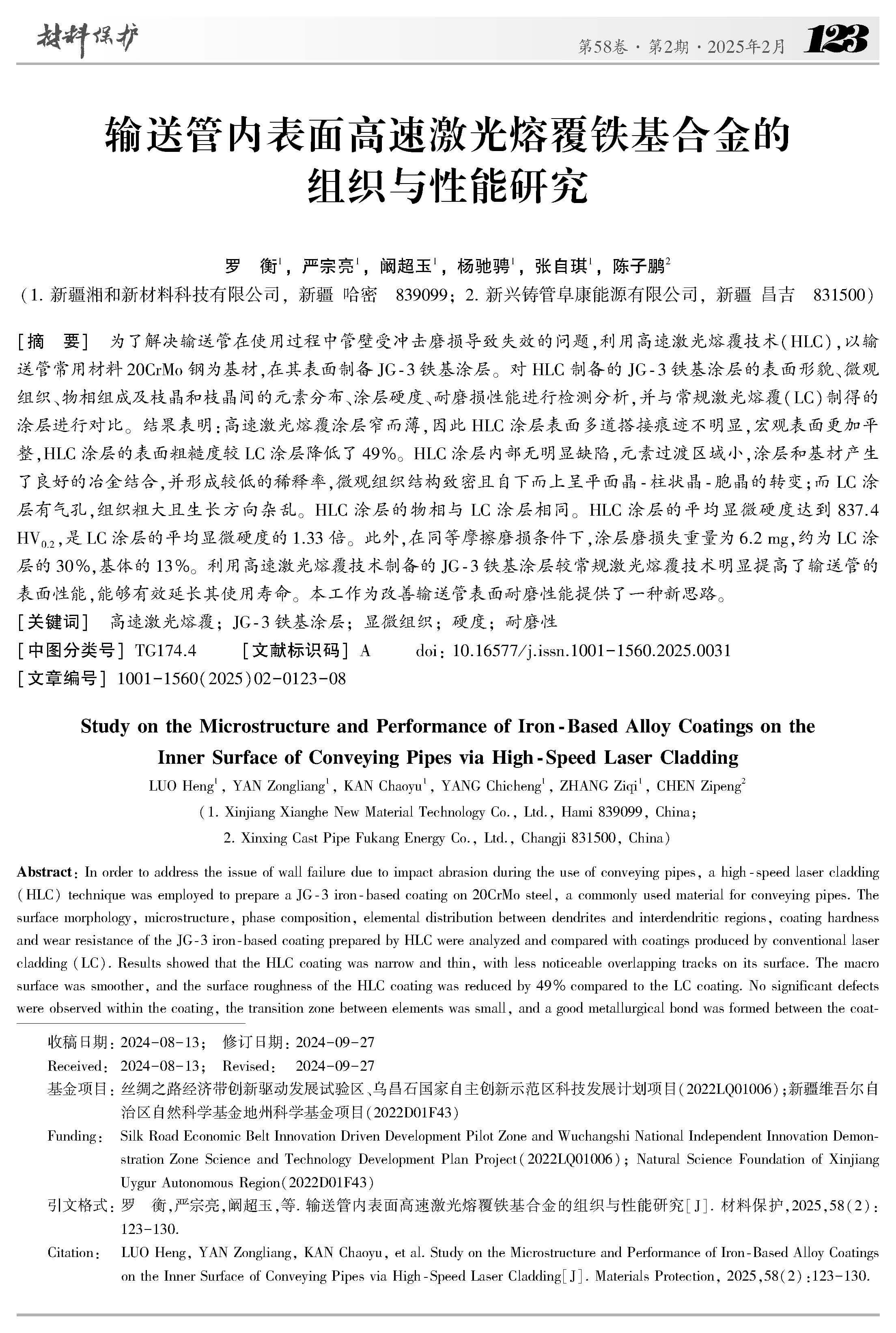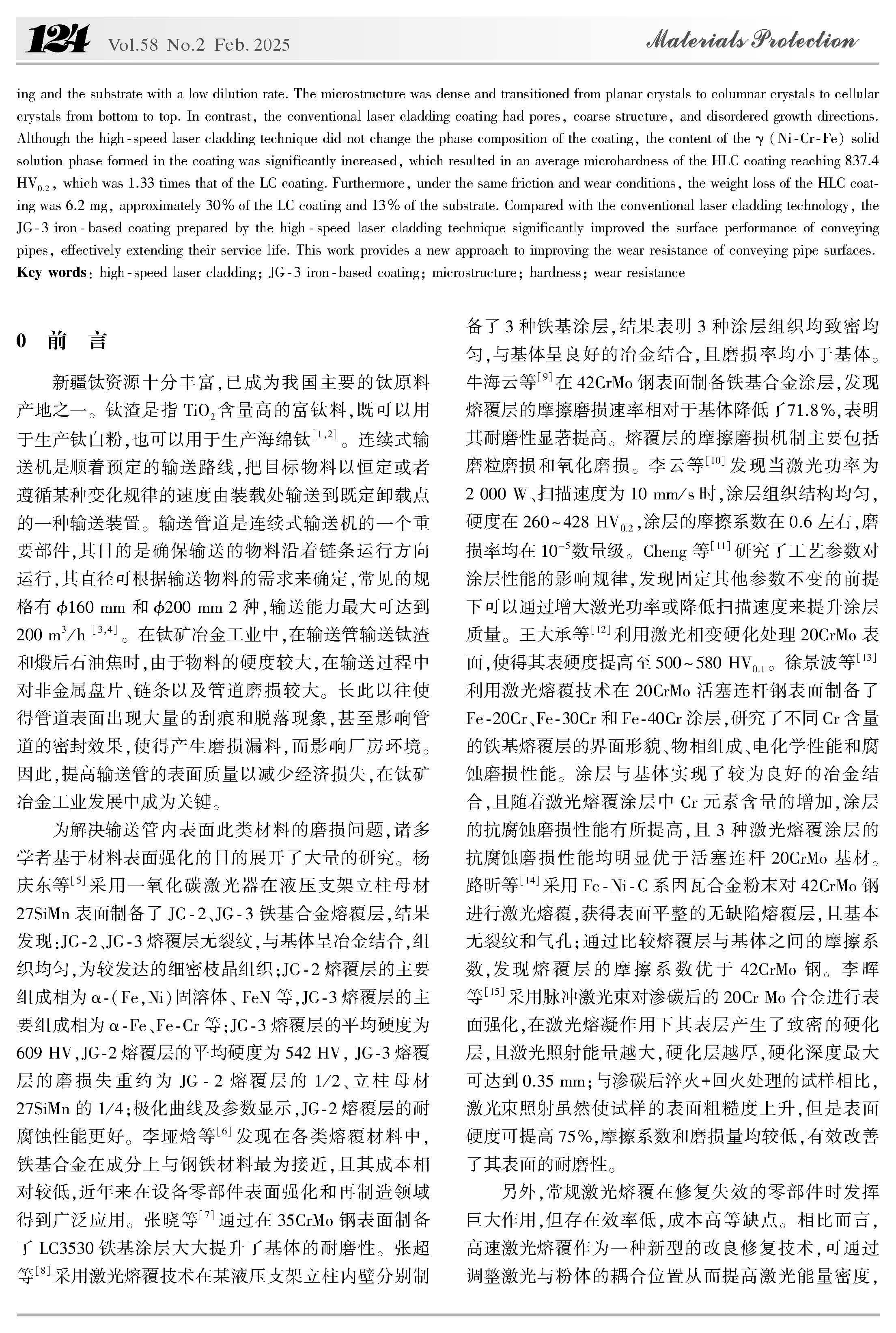 输送管内表面高速激光熔覆铁基合金的组织与性能研究