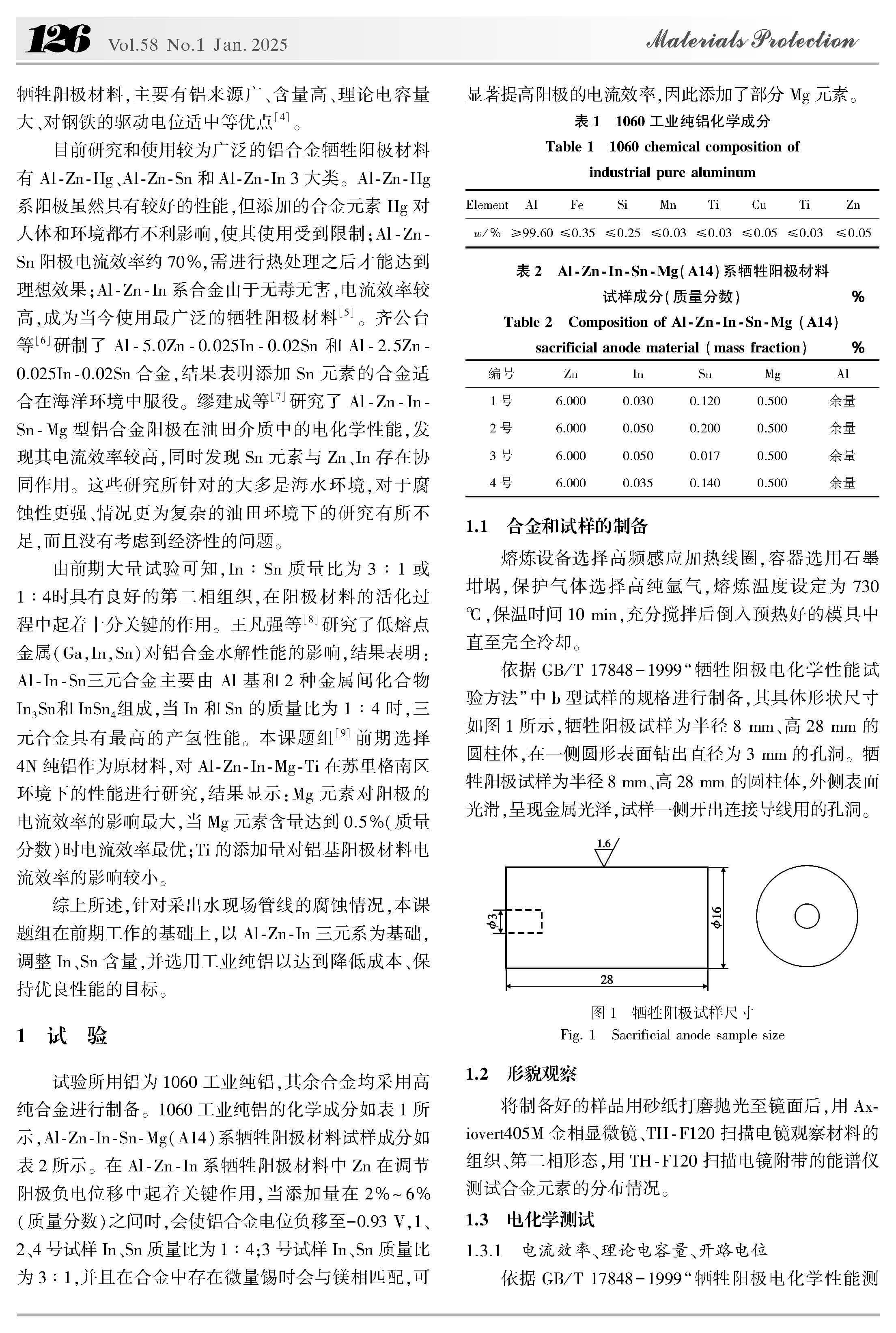 Al-Zn-In-Sn-Mg系五元铝基牺牲阳极材料在油田采出水中的性能研究