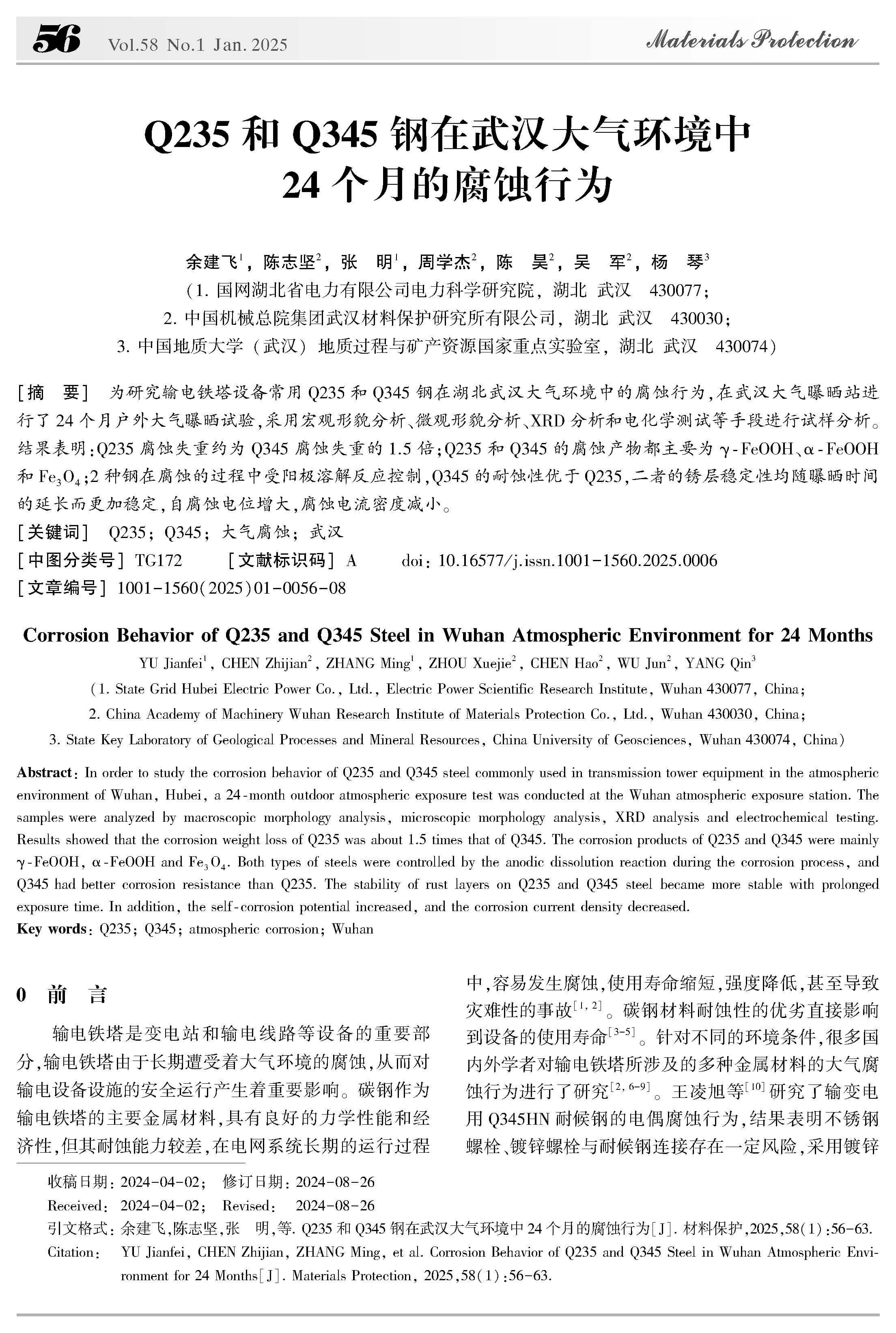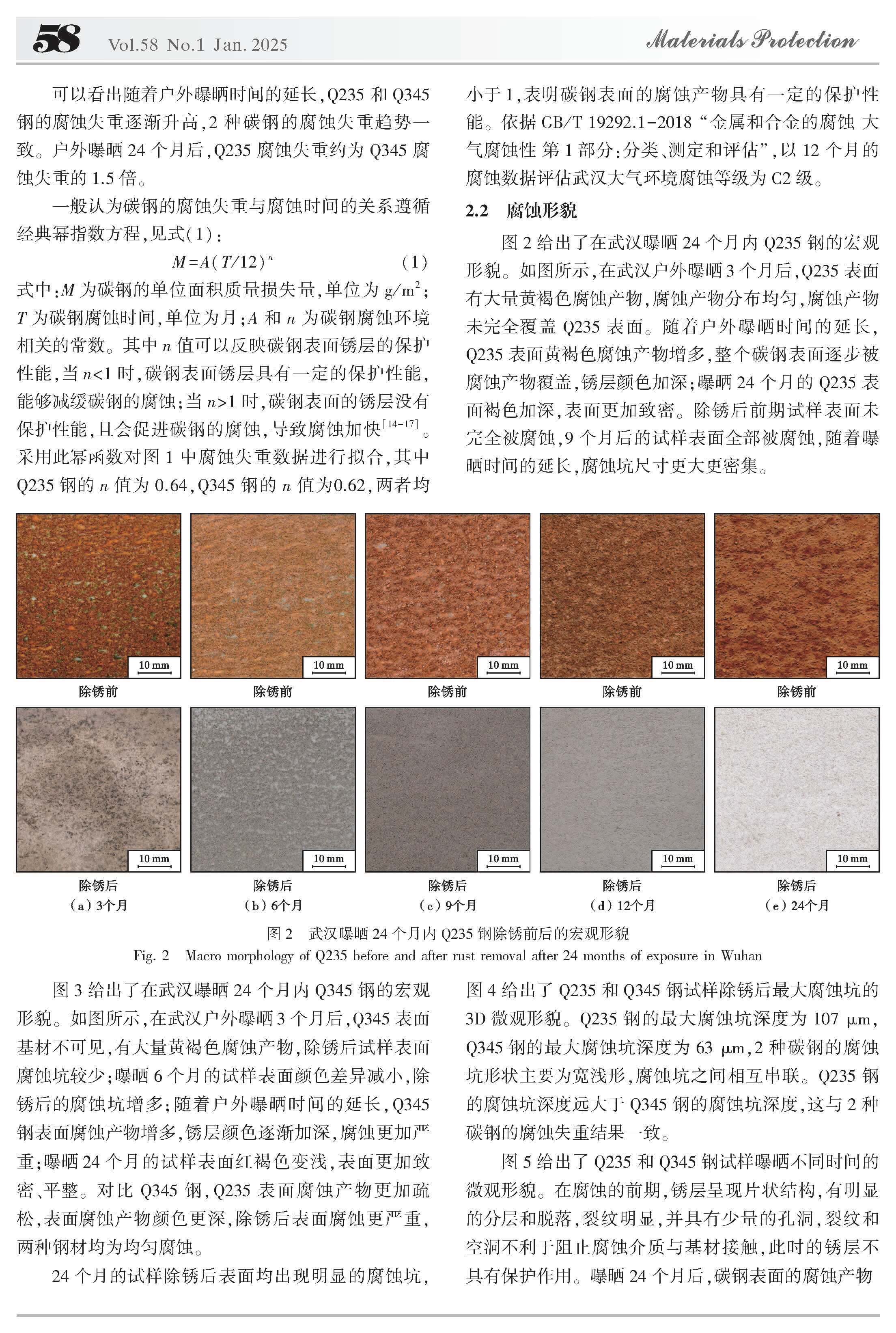 Q235和Q345钢在武汉大气环境中24个月的腐蚀行为