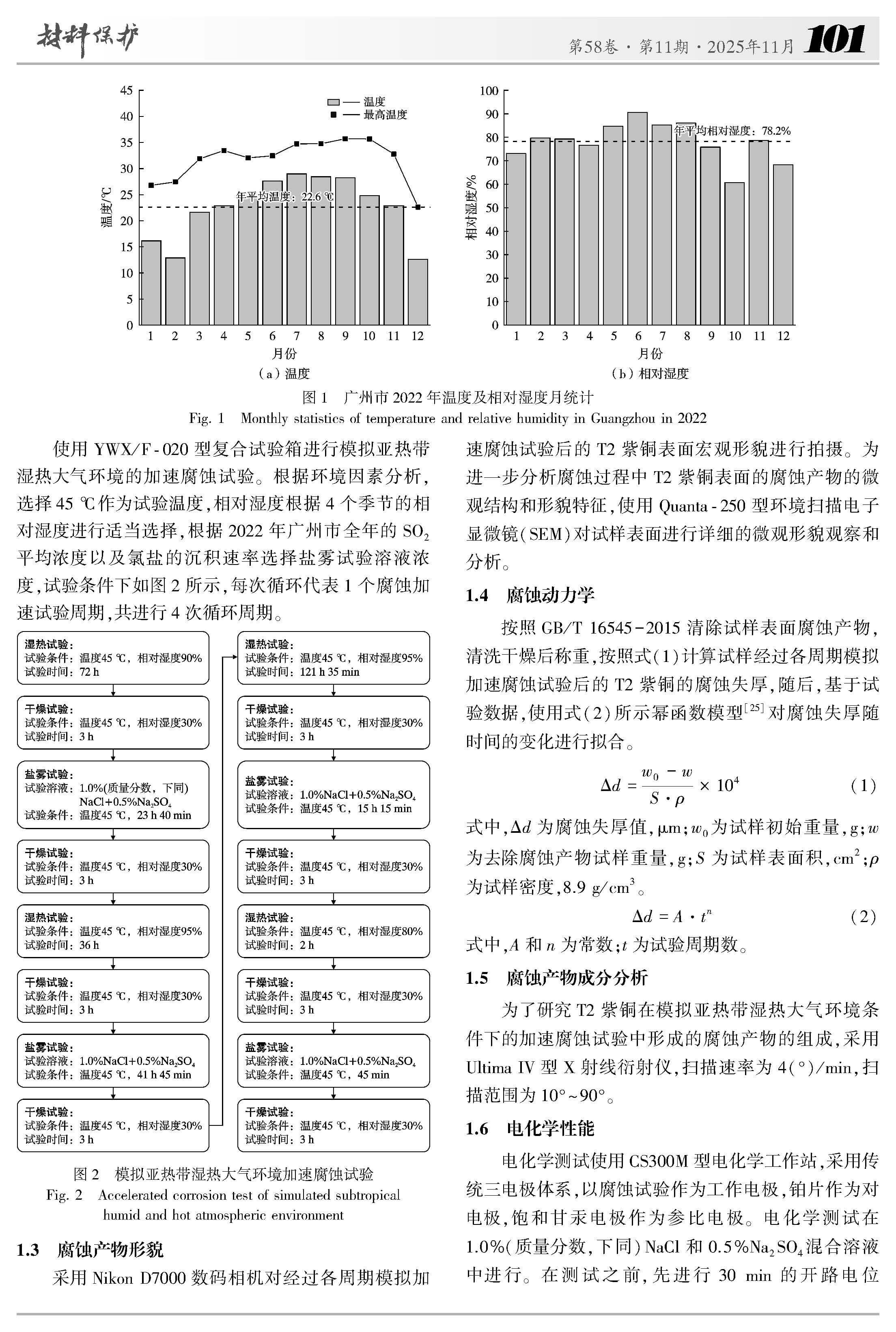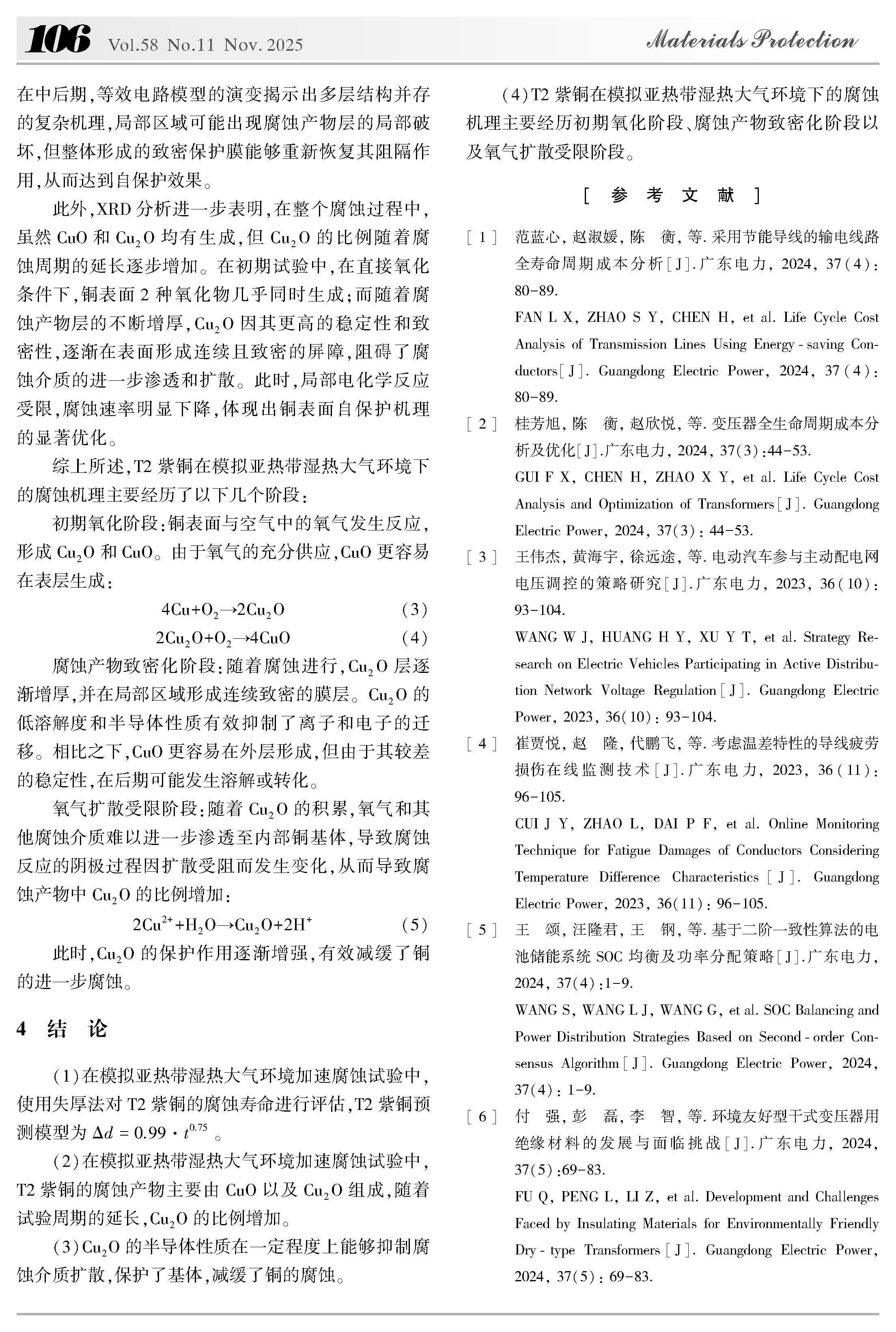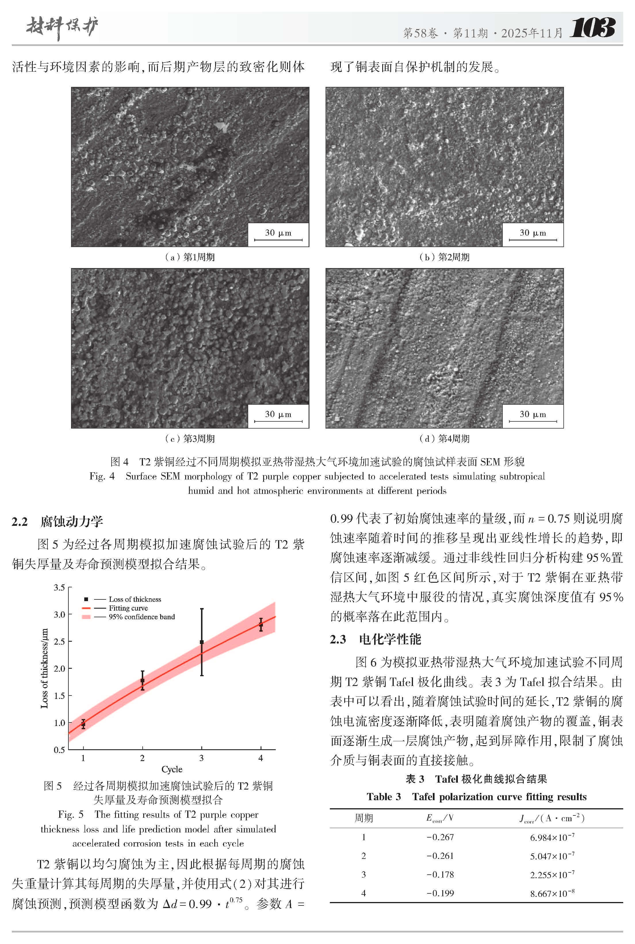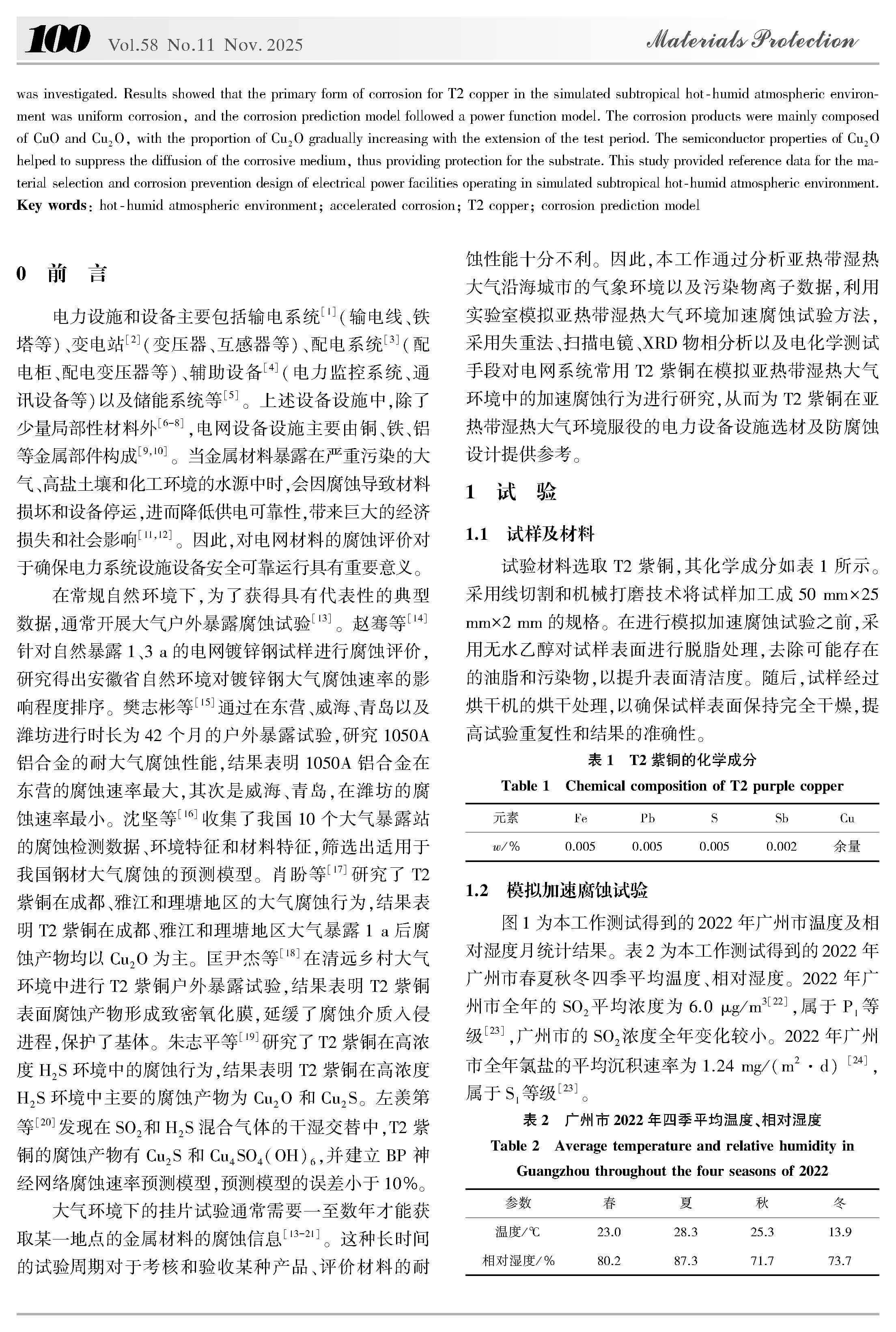 T2紫铜在模拟亚热带湿热大气环境中的加速腐蚀行为