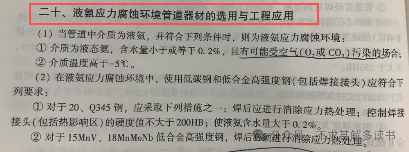 SHT3059-2012《石油化工管道设计器材选用规范》中关于液氨应力腐蚀环境的选材要求:规范中给出了液氨应力腐蚀环境的判定及处理要求,那么对于液氨的应力腐蚀机理到底是怎么样的一个过程,又应该如何进行预防和检测呢?液氨储罐一般都选择碳钢材质,无水液氨的产品质量标准GB/T 536-2017要求如下:正常情况来说,无水液氨对于碳钢只产生很轻微的均匀腐蚀,但是液氨储罐在充装,排料及检维修的时候,容易受到空气的污染,空气中的氧和二氧化碳会加速氨对于碳钢的腐蚀,具体的反应机理如下:反应中的氨基甲酸铵对碳钢有强烈的腐蚀作用,且焊缝处残余的应力较高,导致钢材表面的钝化膜产生破裂,从而造成应力腐蚀开裂。在液氨中使用的碳钢,如果未经过热处理,焊缝金属和热影响区都可能发生开裂,残余应力越大开裂的敏感性越高,一般来说,含水量低于0.005%(质量分数)或者大于0.2%(质量分数)时敏感性均较低,低于-5℃时几乎不会发生,介质中含有少量空气或者氧即可增加开裂的敏感性。氨冷冻装置,一些用于氨储运的碳钢或者低合金钢的管道,储罐和其它设备是易发生氨应力腐蚀开裂的设备。对于碳钢设备需要进行焊后热处理,在氨中加入少量的水(质量分数大于0.2%),控制焊接接头硬度不超过HB225(布氏硬度),防止空气或者氧气混入液氨。对于碳钢或者低合金钢设备或者管道内壁焊缝可以采用湿荧火磁粉检测,外壁采用超声波横波检测,外壁采用声发射检测的方法。《管道器材选用与工程应用》一书中也有所提及,供参考:实际工程设计的时候需要注意液氨的应力腐蚀工况并采取一定的措施。