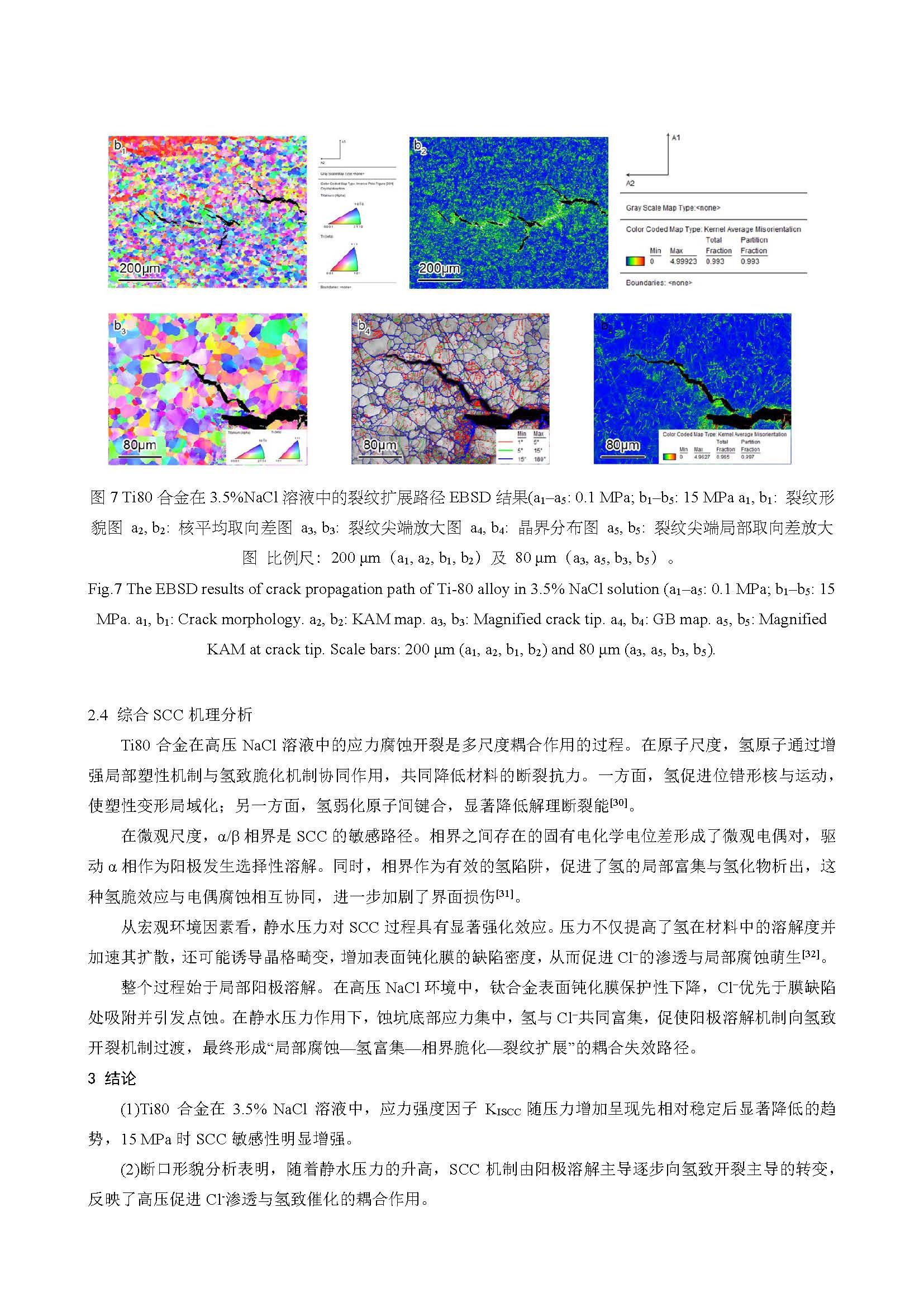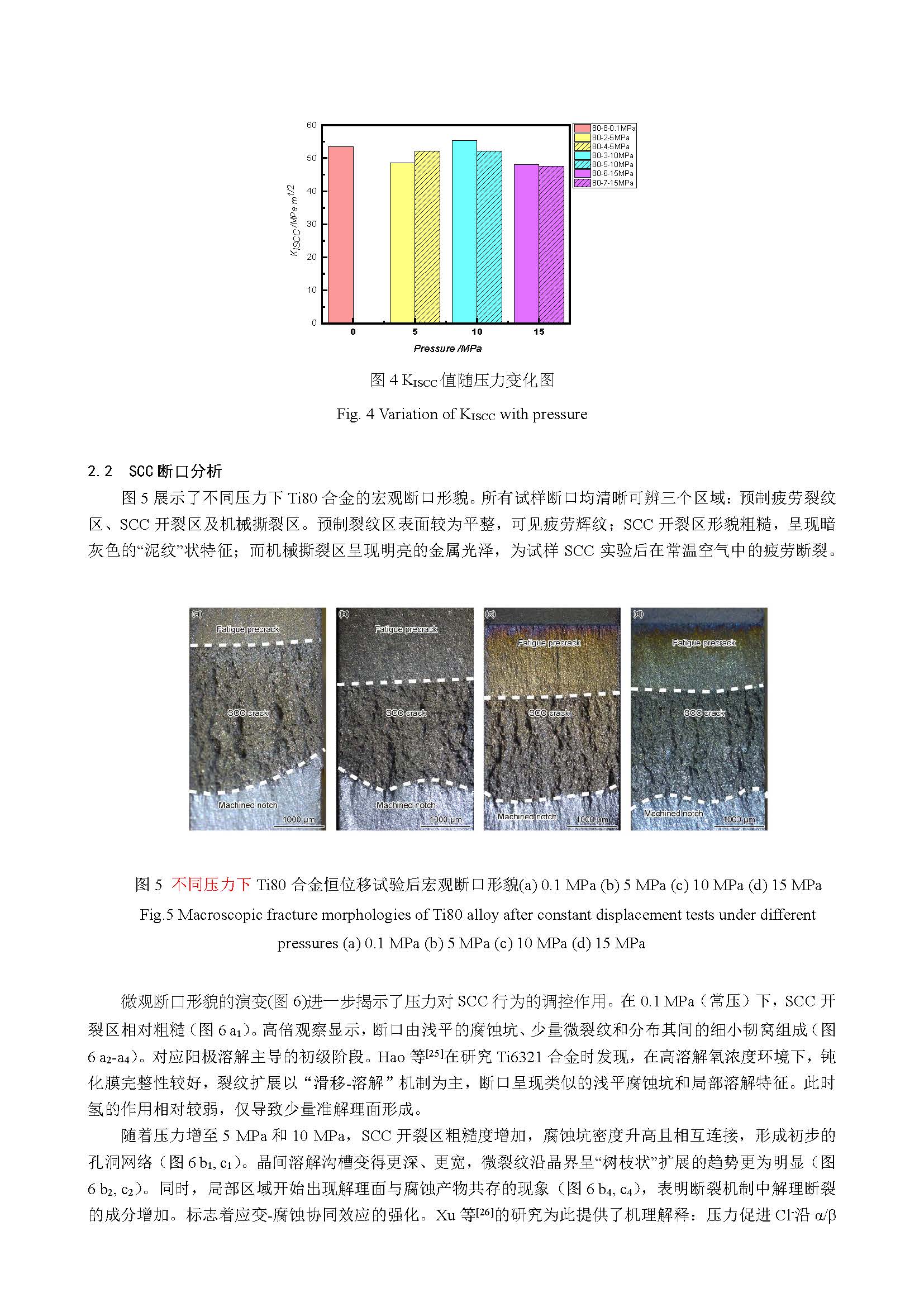 在3.5%NaCl溶液中压力变化对Ti80合金应力腐蚀行为的影响
