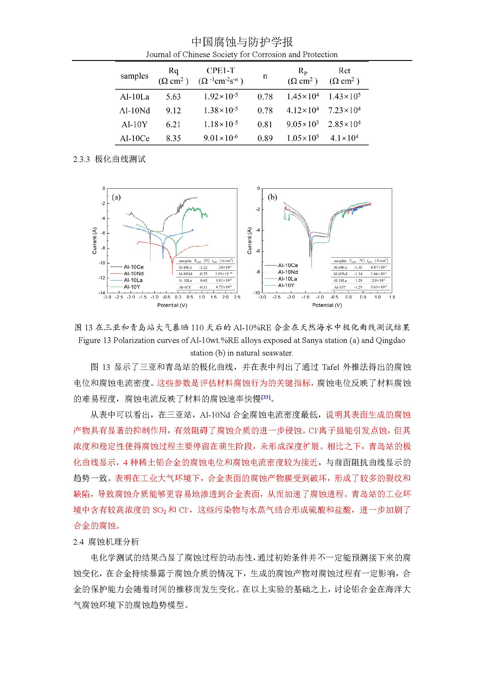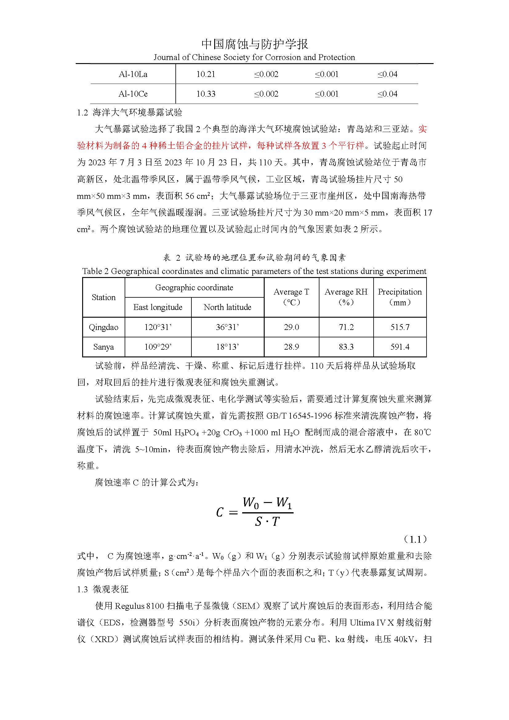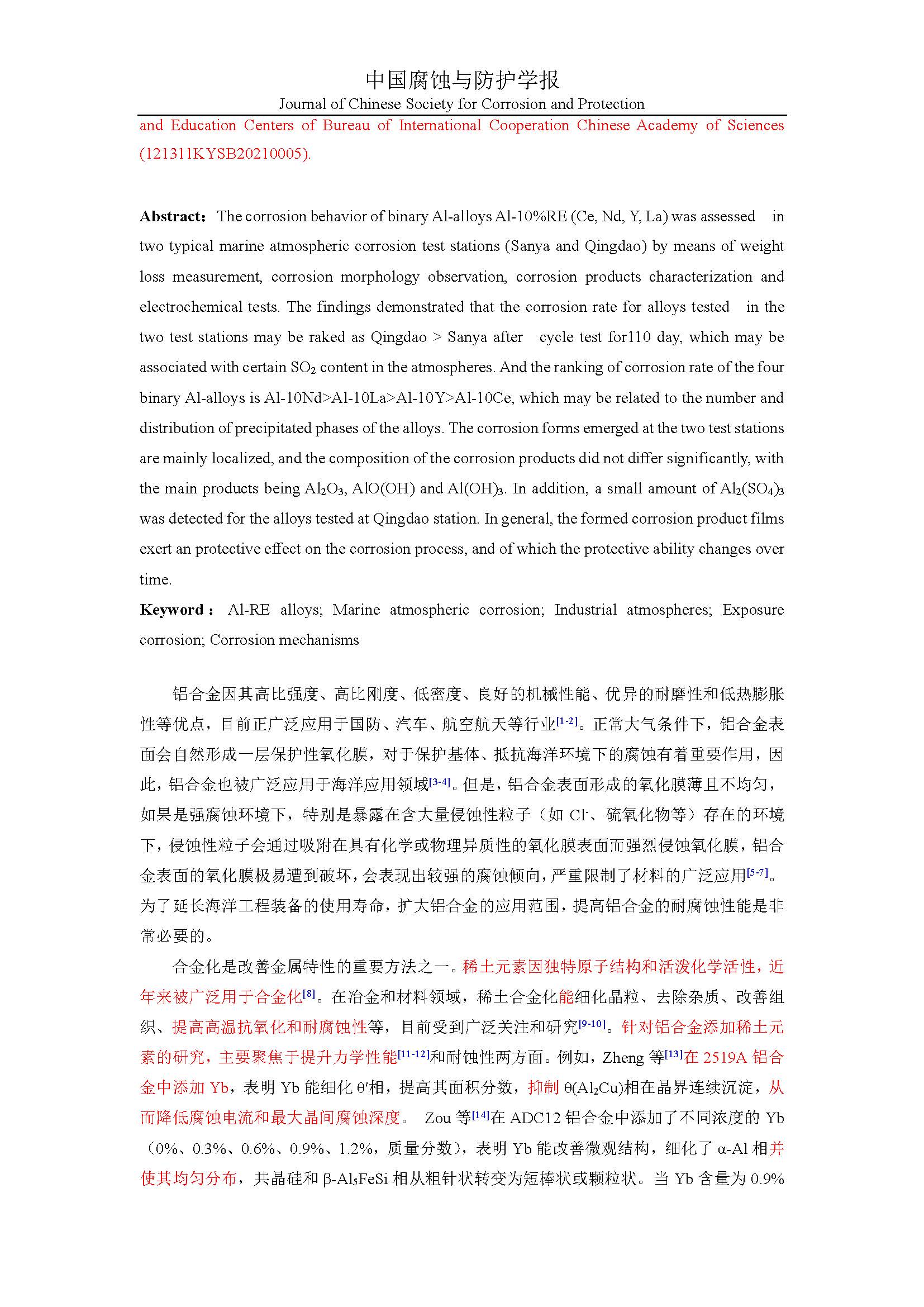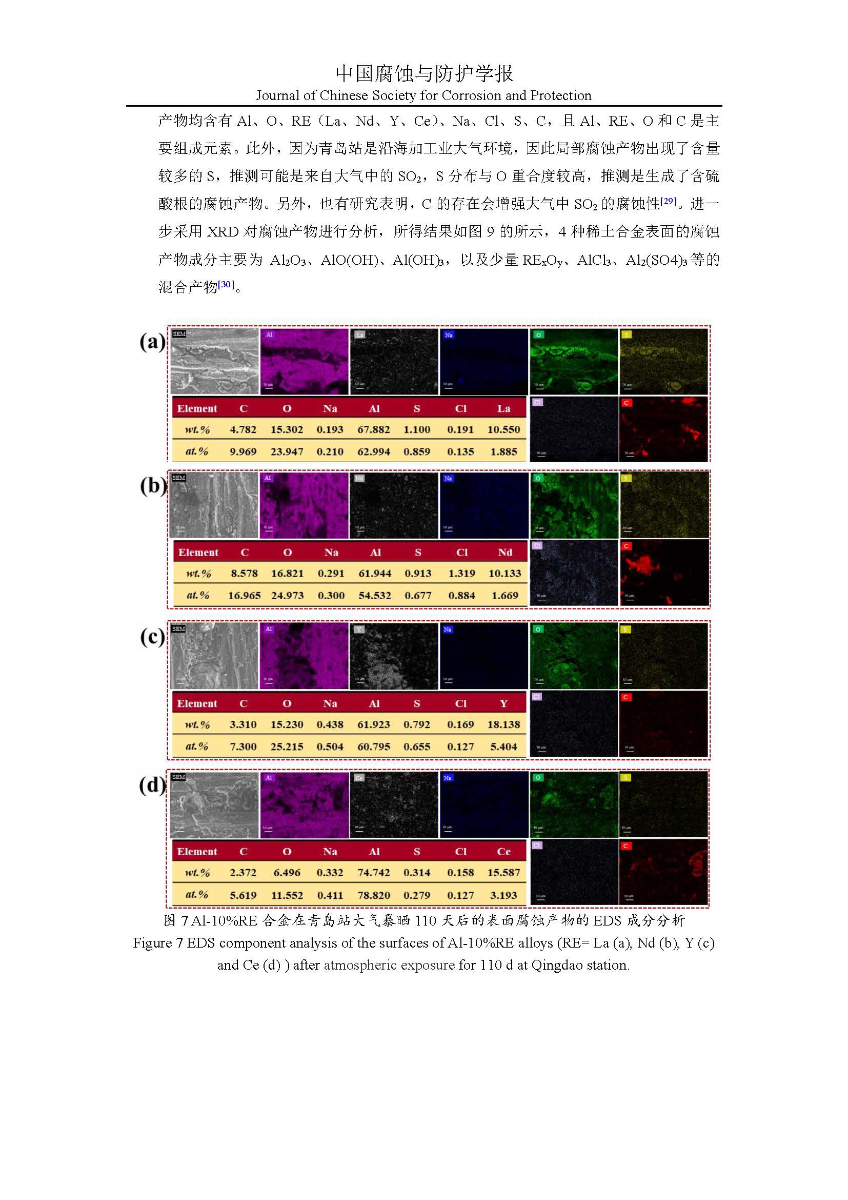 Al-10%RE(RE=Ce、Nd、Y、La)合金在典型海洋大气环境下的腐蚀行为研究