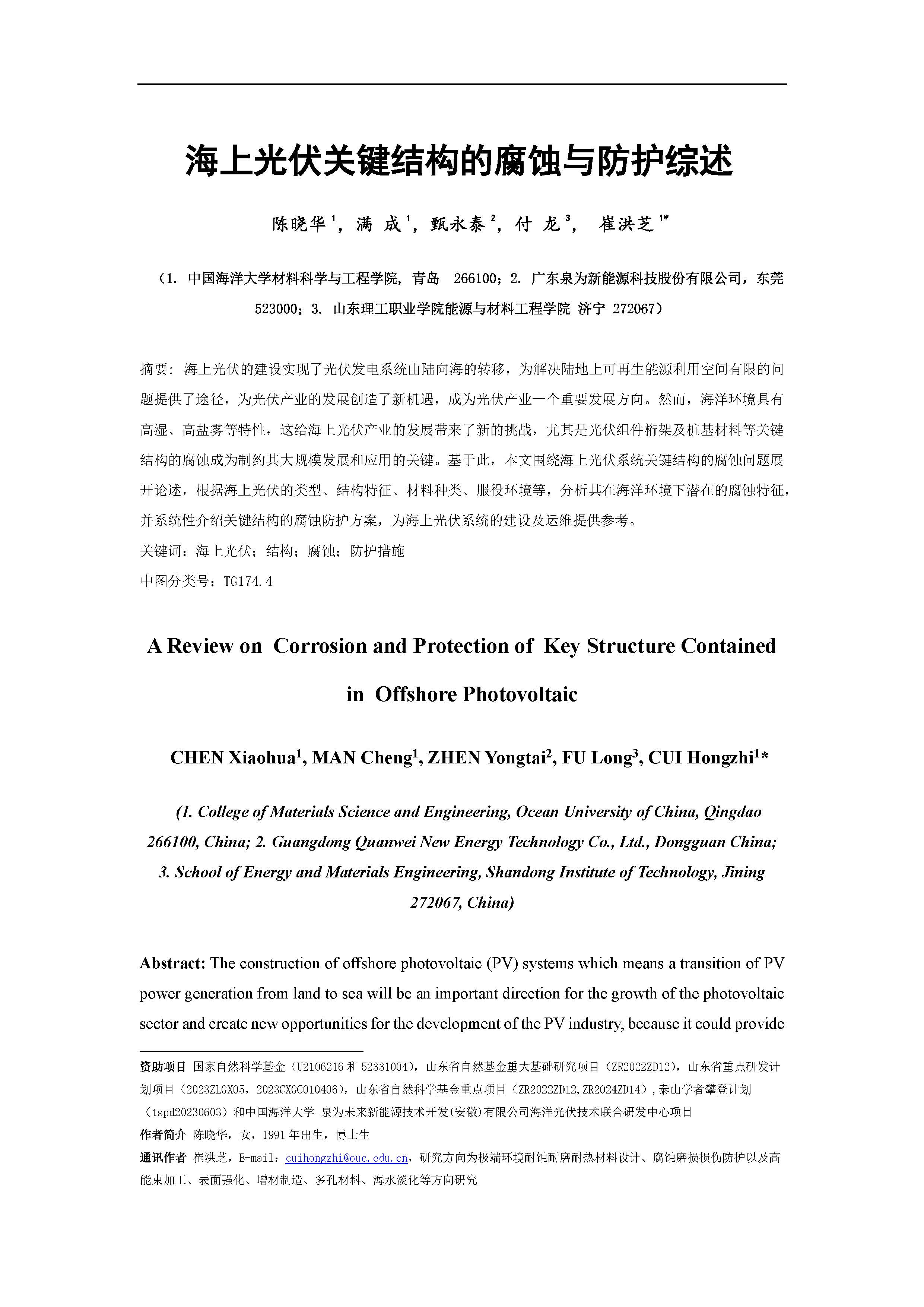 海上光伏关键结构的腐蚀与防护综述