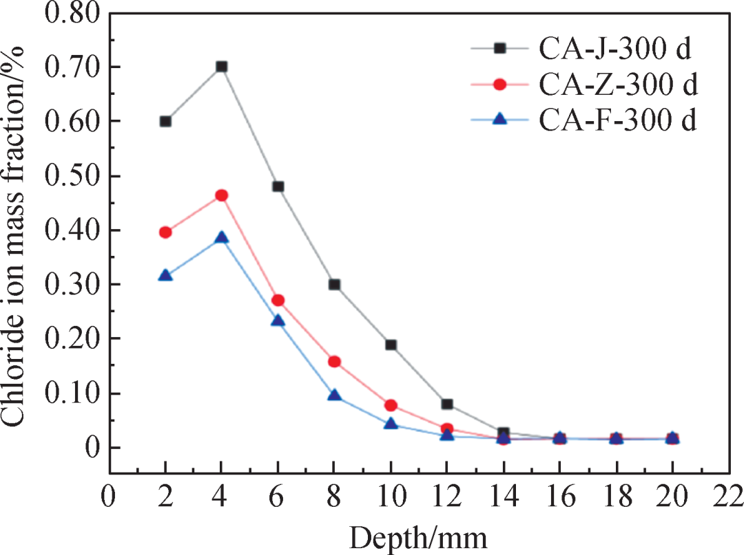 在滨海盐雾环境中,氯离子渗透是导致混凝土结构钢筋锈蚀、耐久性劣化的关键因素。装配式混凝土结构中普遍存在的施工接缝因界面区孔隙多、结构不连续,往往成为氯离子侵入的薄弱环节。目前,针对海水浸泡或干湿交替环境下接缝混凝土耐久性的研究较多,但对盐雾环境中带接缝混凝土的氯离子侵蚀行为及抑制措施尚缺乏系统研究。《硅酸盐通报》2026年第1期发表了来自江苏大学的研究论文《盐雾环境下带接缝混凝土抗氯离子侵蚀性能研究》(第一作者延永东),本文聚焦盐雾环境下带接缝混凝土的抗氯离子侵蚀性能,系统考察了接缝类型、侵蚀时间及自愈合材料类型对氯离子传输行为的影响。研究旨在揭示盐雾环境中接缝区氯离子的侵蚀规律,评估自愈合材料的防护效果,为提升沿海装配式混凝土结构的耐久性提供实验依据与理论支持。 原材料主要包括P·O 42.5水泥、天然河砂、碎石、一级粉煤灰,聚羧酸减水剂(SP)。此外,为得出不同类型自愈合材料对带接缝混凝土抗氯离子侵蚀的效果,在混凝土中掺加不同类型的自愈合材料:结晶外加剂(CA)、UEA膨胀剂(CSA)和高分子吸水树脂(SAP)。 考虑接缝类型、侵蚀时间、自愈合材料类型三种因素的影响,试件的强度等级设计为C60。其中接缝类型包括凿毛湿接缝(Z)和直接湿接缝(J)两种,同时设计非接缝(F)试件用于对比分析;自愈合材料包括单掺CA、单掺SAP、单掺CSA、复掺CA和SAP(记为CS)、复掺CA和CSA(记为CC)5种类型;侵蚀时间分别为90、120、180、240和300 d,其中接缝类型和侵蚀时间只针对单掺CA的试件。SP用量均为胶凝材料质量的0.3%,CA、CSA和SAP掺量分别为胶凝材料质量的2.0%、10%和0.5%。盐雾由质量分数为5%的NaCl溶液生成,盐雾箱内温度为(30±2) ℃,盐雾沉降率为0.125~0.025 mL/(h·cm2),采用间歇式喷雾方式,即喷雾12 h、间歇12 h,每24 h为一个循环,直至设定时间。 表1 自愈合材料的技术参数 表2 试件编号及配合比 图1 混凝土拌和流程 图2 带接缝混凝土试件制作流程 接缝类型对混凝土内氯离子质量分数的影响 相同深度处,三种接缝类型试件内氯离子质量分数由大到小依次为直接湿接缝试件、凿毛湿接缝试件、非接缝试件。在距表面4 mm深度处,三种接缝类型试件都出现了氯离子质量分数峰值,其中直接湿接缝混凝土内的氯离子质量分数相比凿毛湿接缝混凝土增大了51.1%,且直接湿接缝处的氯离子质量分数远大于非接缝处,而凿毛湿接缝处的氯离子质量分数与非接缝处相差较小,表明凿毛处理是改善混凝土接缝处耐久性的有效措施。 图3 不同接缝类型混凝土内的氯离子质量分数分布 侵蚀时间对混凝土内氯离子质量分数的影响 随着侵蚀时间的增加,接缝对混凝土抗氯离子侵蚀性能的劣化效果愈发明显。试件经盐雾侵蚀90、120、180、240和300 d后,直接湿接缝处的最大氯离子质量分数相比非接缝处分别增加了31.9%、40.1%、53.1%、60.2%和82.1%。随着侵蚀时间的延长,氯离子在混凝土内的影响深度逐渐增大。经过盐雾侵蚀90、120、180、240和300 d后,接缝处混凝土氯离子质量分数分别在距表面12、12、14、16和16 mm深度处趋于稳定,非接缝处混凝土氯离子质量分数分别在距表面10、10、12、14和14 mm深度处趋于稳定,相同侵蚀时间下接缝处的氯离子侵入深度要大于非接缝处。非接缝混凝土和带接缝混凝土均在距表面4 mm深度处出现氯离子质量分数峰值。 图4 不同侵蚀龄期下直接湿接缝与非接缝混凝土的氯离子质量分数分布 自愈合材料类型对混凝土内氯离子质量分数的影响 在同一深度时,非接缝处混凝土的氯离子质量分数由大到小依次为掺加CS试件、掺加SAP试件、掺加CSA试件、无掺加试件、掺加CA试件、掺加CC试件,接缝处混凝土的氯离子质量分数由大到小依次为掺加SAP试件、掺加CS试件、无掺加试件、掺加CSA试件、掺加CA试件、掺加CC试件。掺加CA和CC试件在接缝处和非接缝处的氯离子质量分数均低于对照组,且试件在距表面4 mm深度处出现了氯离子质量分数峰值。在非接缝处,掺加CA和CC试件的氯离子质量分数峰值相比对照组分别降低了18.1%和30.4%;在接缝处,掺加CA和CC试件的氯离子质量分数峰值相比对照组分别降低了26.9%和50.6%。说明单掺CA和复掺CA、CSA均可减弱接缝对混凝土抗氯离子侵蚀性能的不利影响。 图5 掺加不同自愈合材料的混凝土在接缝与非接缝处的氯离子质量分数分布 带接缝混凝土表观氯离子扩散系数分析 以掺加CA的混凝土试件为例,随着侵蚀时间的延长,混凝土在接缝处和非接缝处的表观氯离子扩散系数逐渐减小,且在相同时间段内,混凝土在接缝处的表观氯离子扩散系数均大于非接缝处。随着侵蚀时间的增加,相同间隔周期内的混凝土表观氯离子扩散系数差值不断减小。在侵蚀120~180 d、180~240 d和240~300 d三个周期内,混凝土在非接缝处的表观氯离子扩散系数分别降低了3.92×10-7、2.22×10-7和1.30×10-7 mm2/s。 以掺加不同类型自愈合材料的混凝土试件为例,混凝土在接缝处的表观氯离子扩散系数均大于非接缝处。掺加不同自愈合材料的混凝土接缝处的表观氯离子扩散系数由大到小依次为掺加SAP试件、掺加CS试件、无掺加试件、掺加CSA试件、掺加CA试件、掺加CC试件,非接缝处的表观氯离子扩散系数由大到小依次为掺加CS试件、掺加SAP试件、掺加CA试件、掺加CSA试件、无掺加试件、掺加CC试件。单掺CA与CSA的混凝土在接缝处和非接缝处
