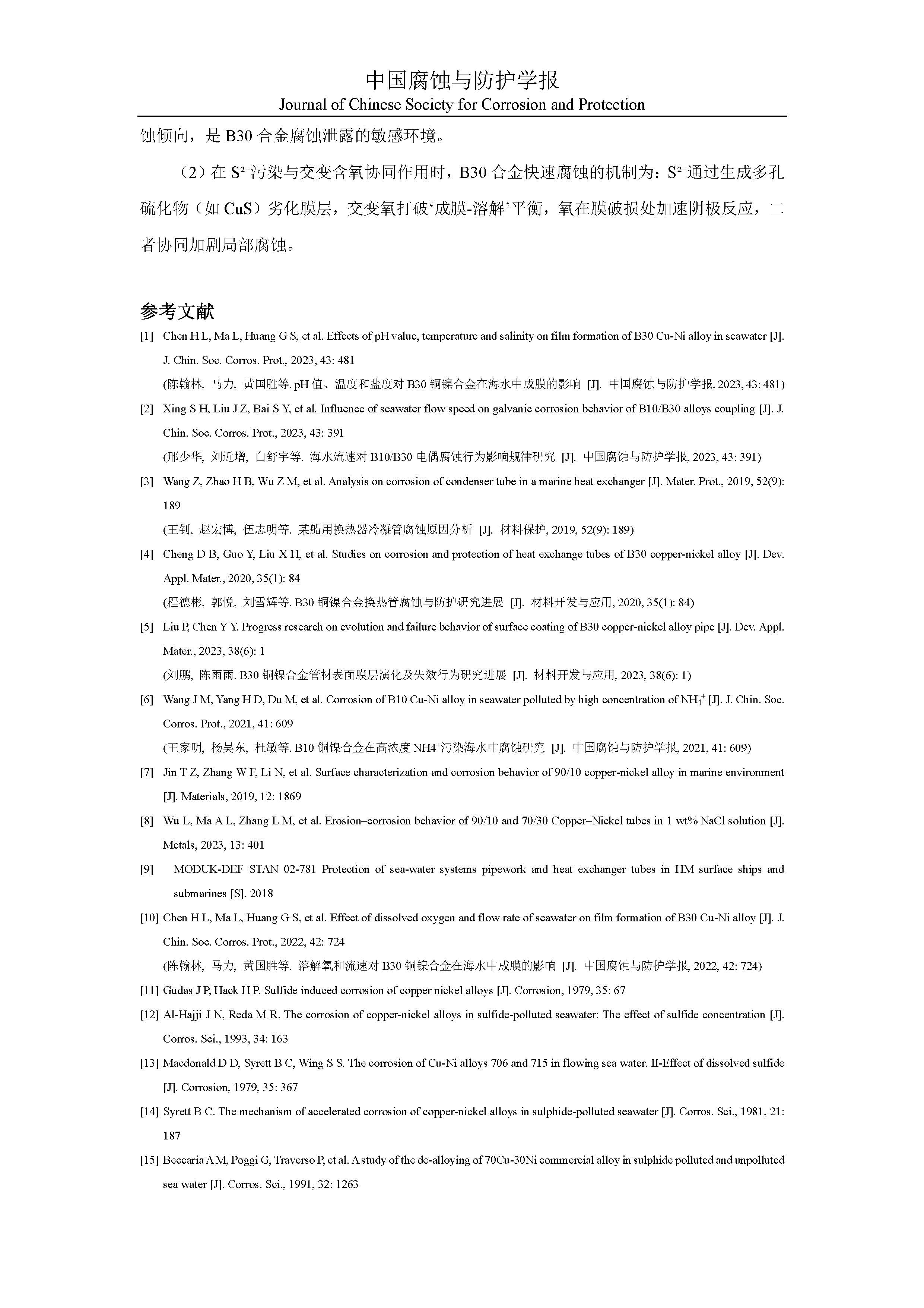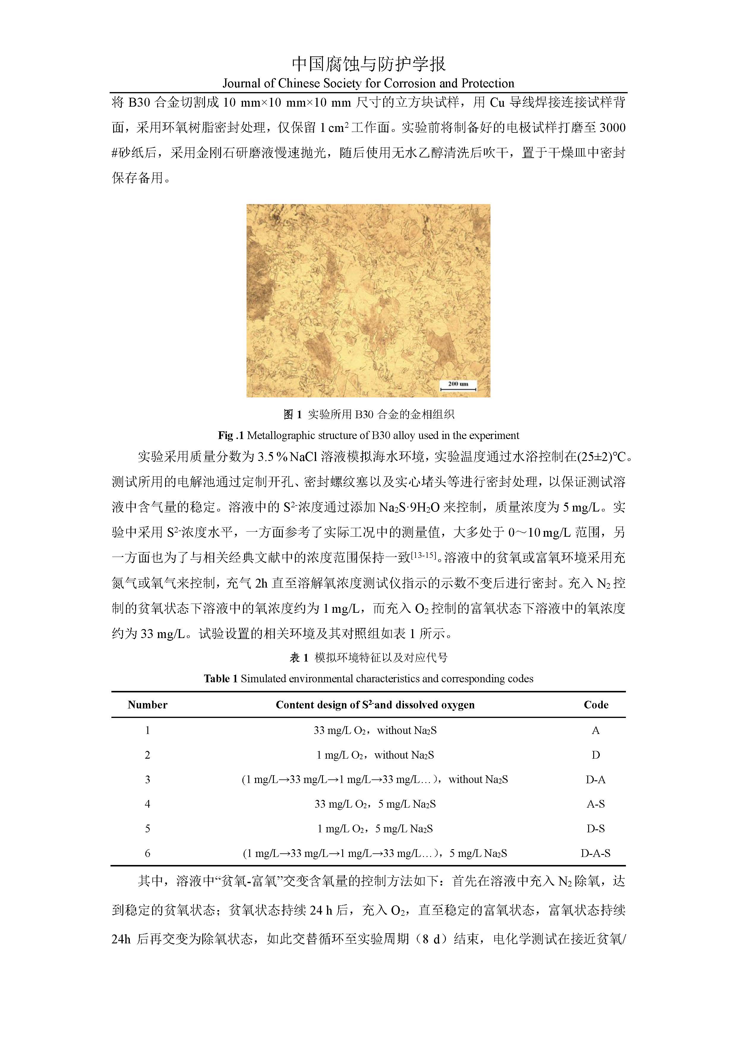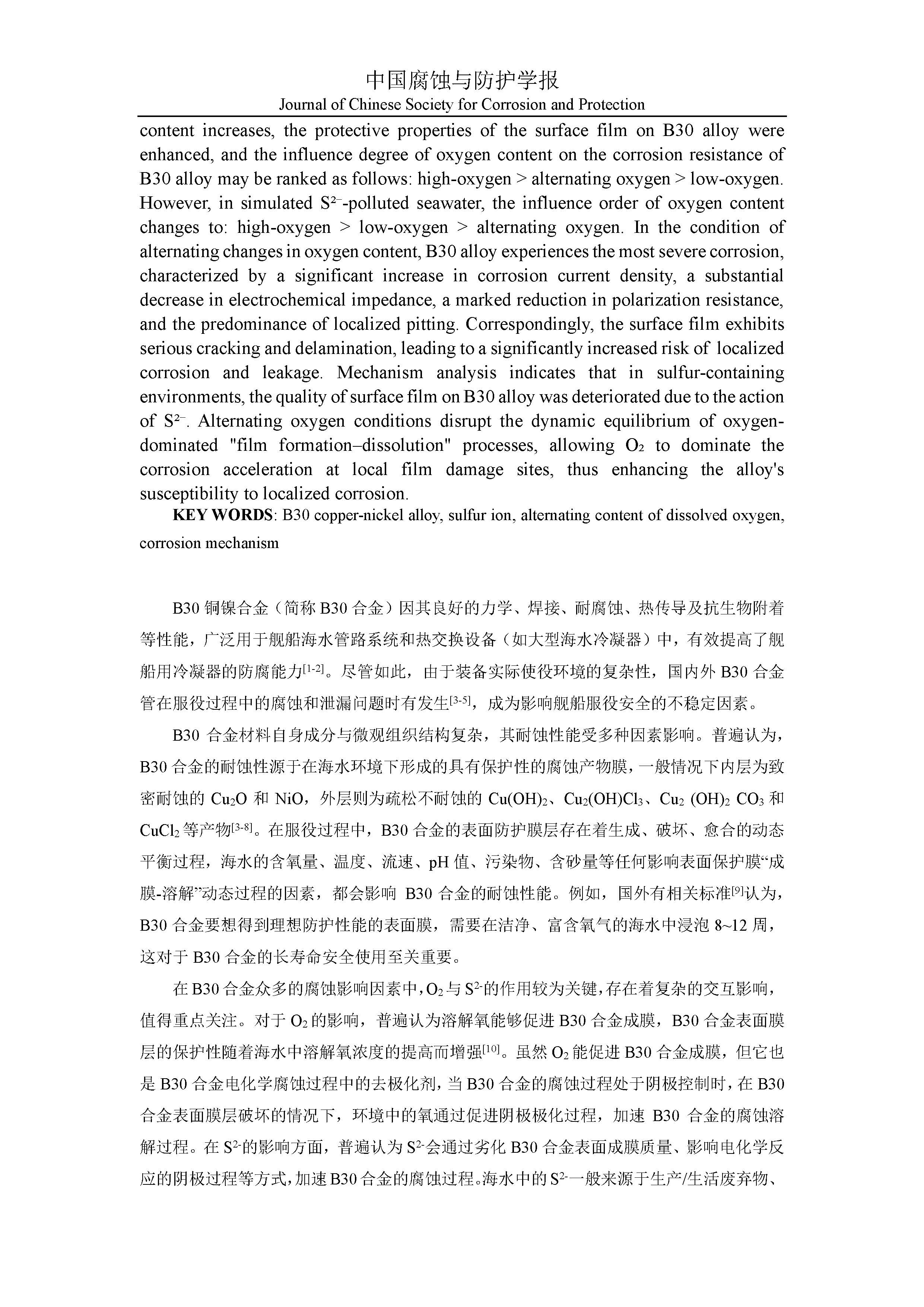 模拟硫污染海水环境下交变氧含量对B30铜镍合金腐蚀行为的影响机制研究
