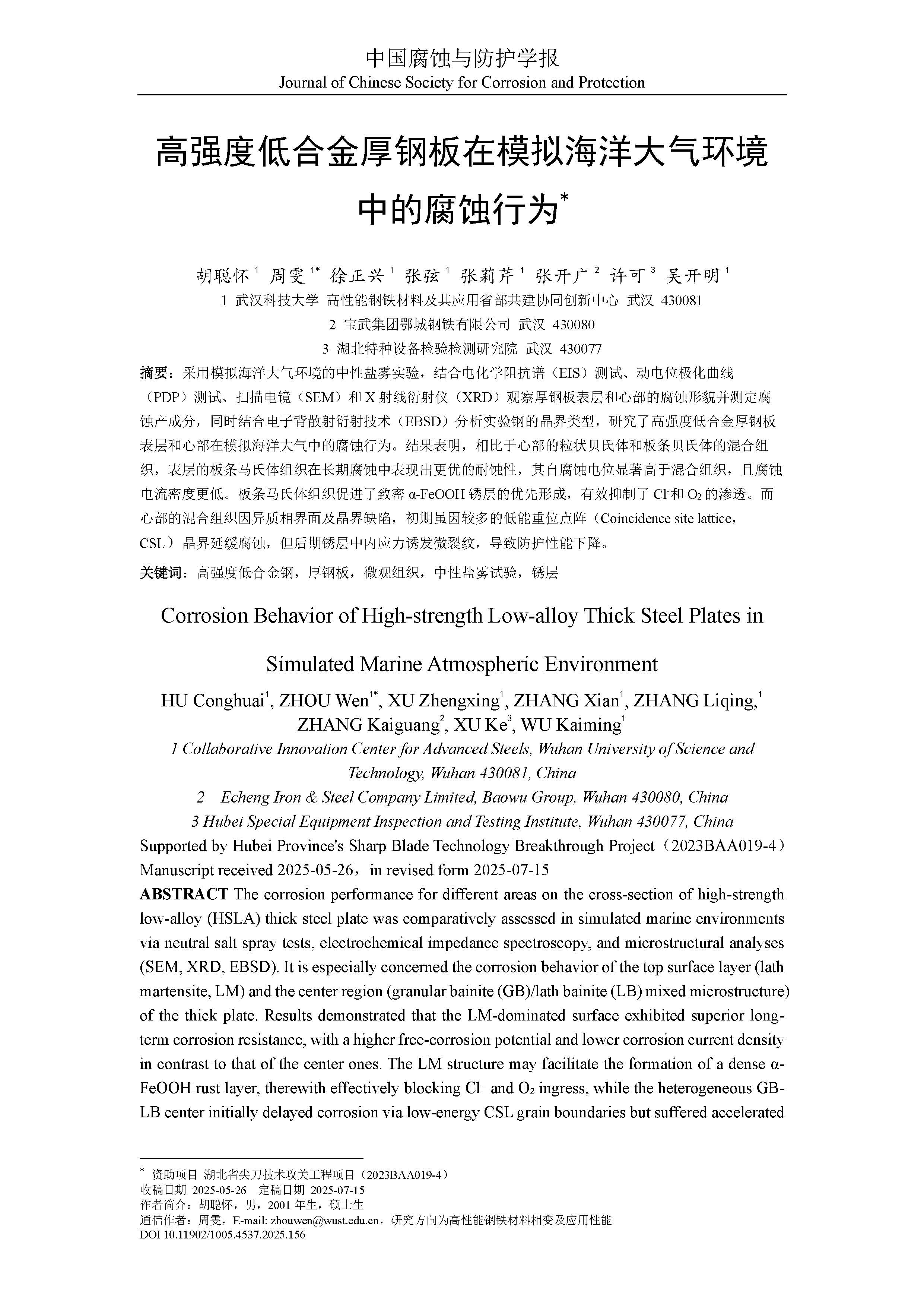 高强度低合金厚钢板在模拟海洋大气环境中的腐蚀行为