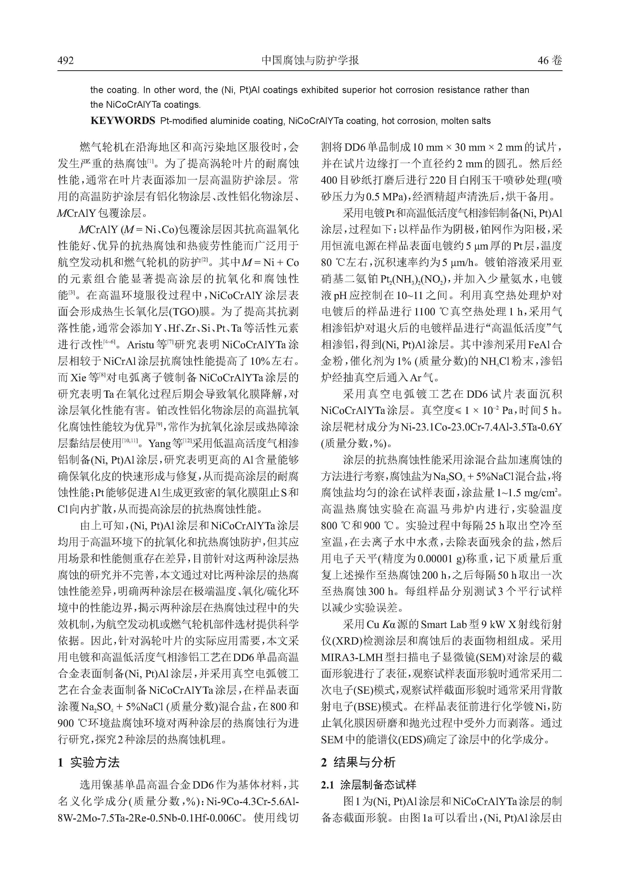 (Ni, Pt)Al和NiCoCrAlYTa涂层对镍基单晶高温合金DD6抗热腐蚀性能的影响