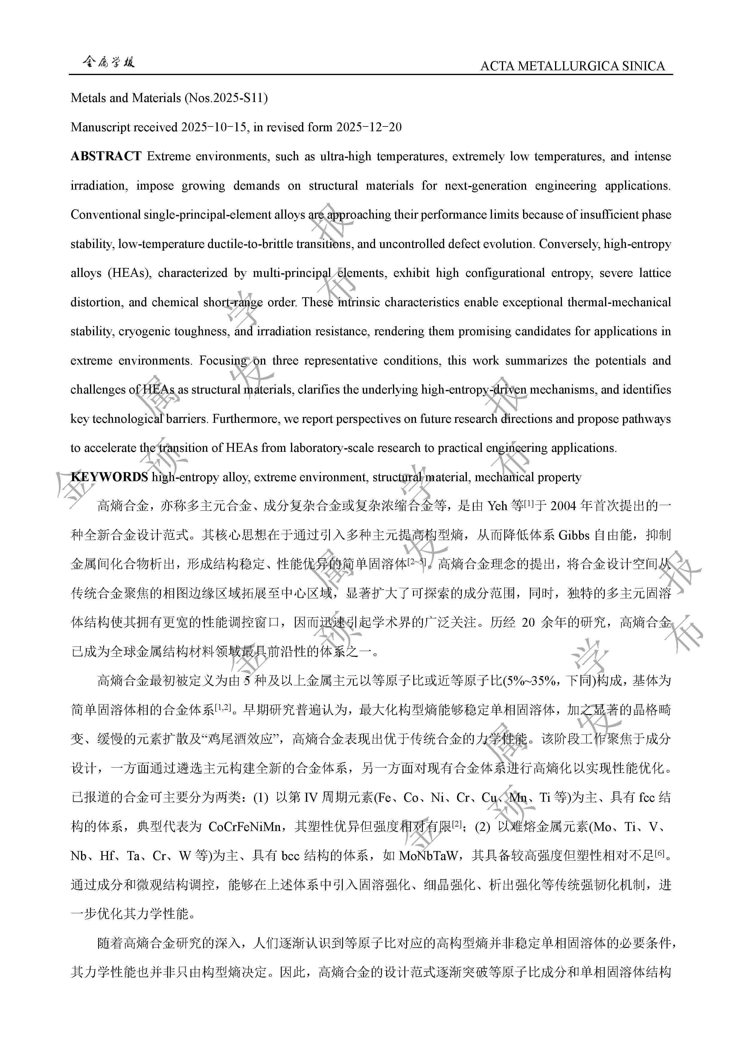 面向极端服役条件的高熵合金结构材料:性能优势、瓶颈与突破路径