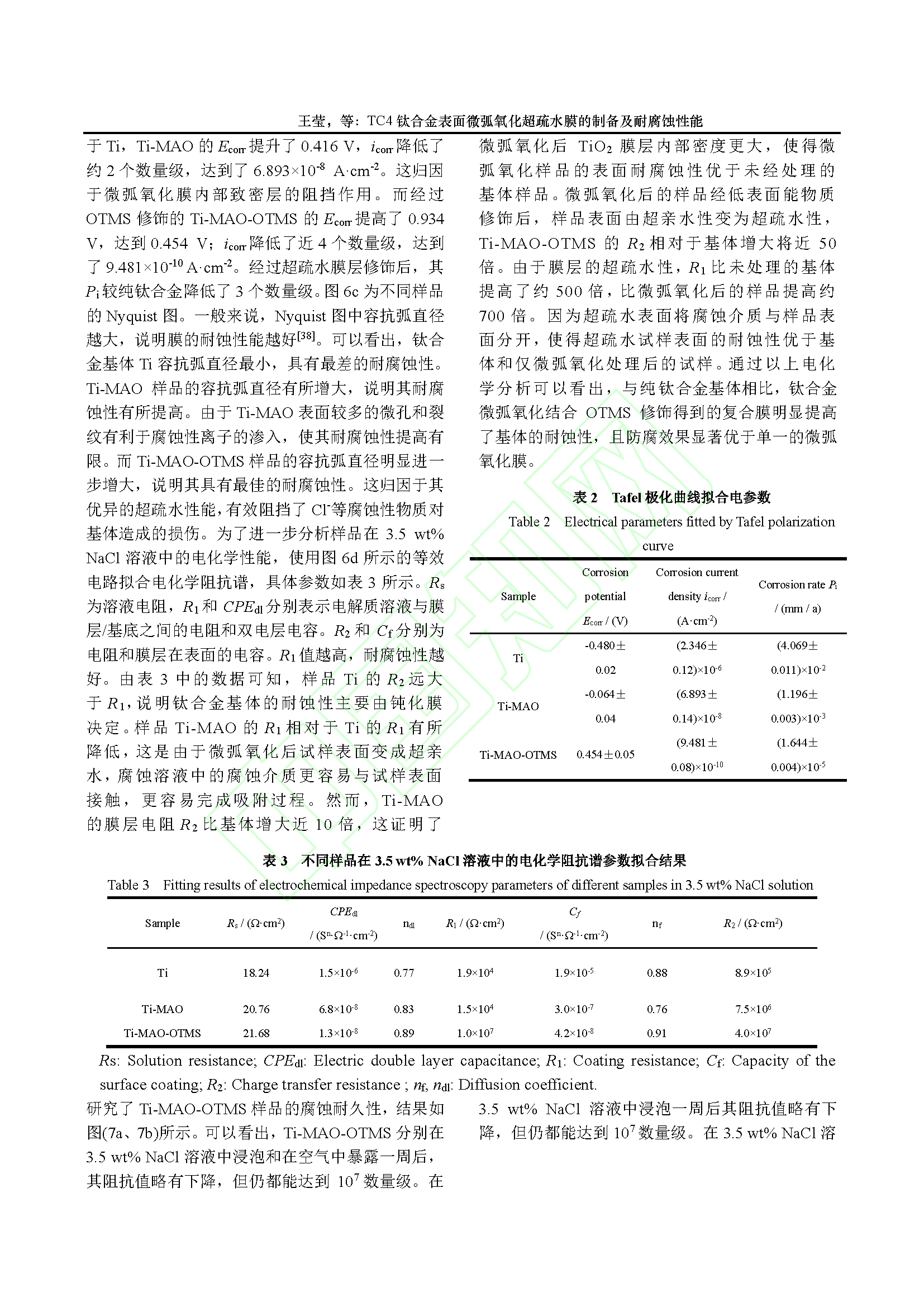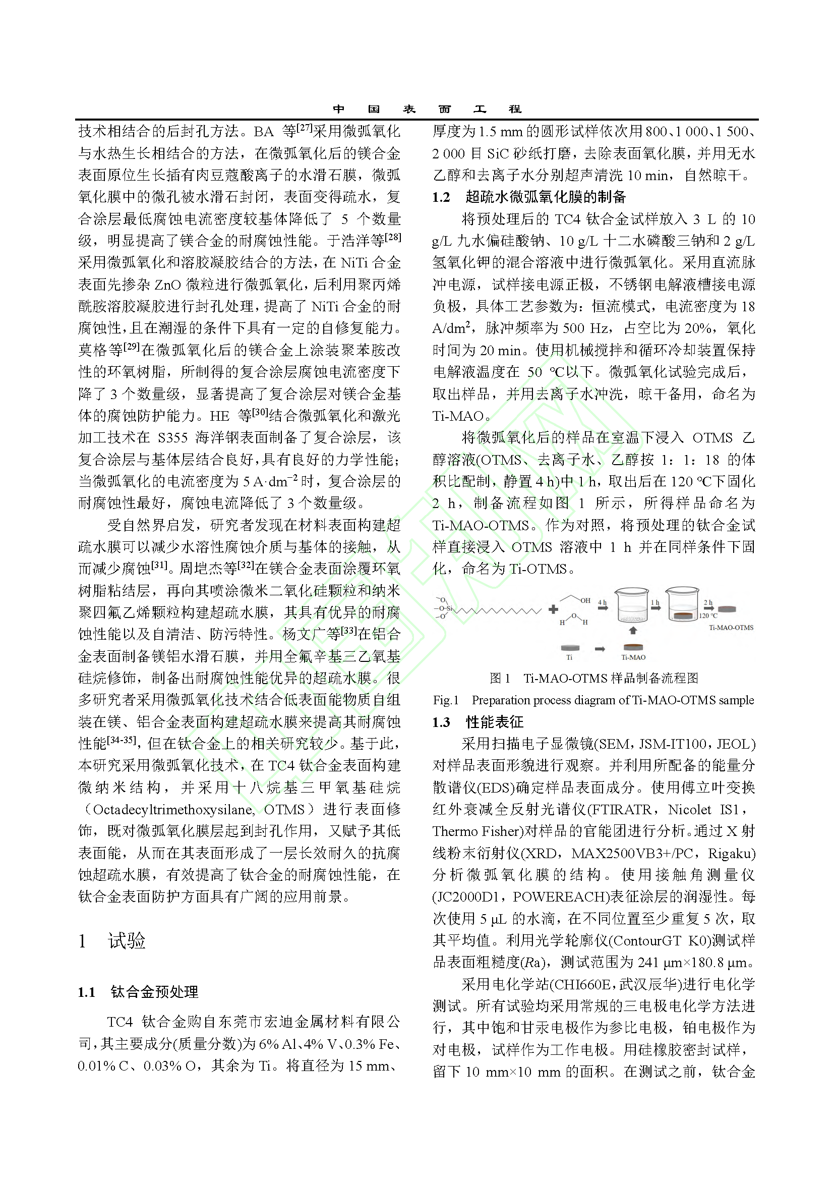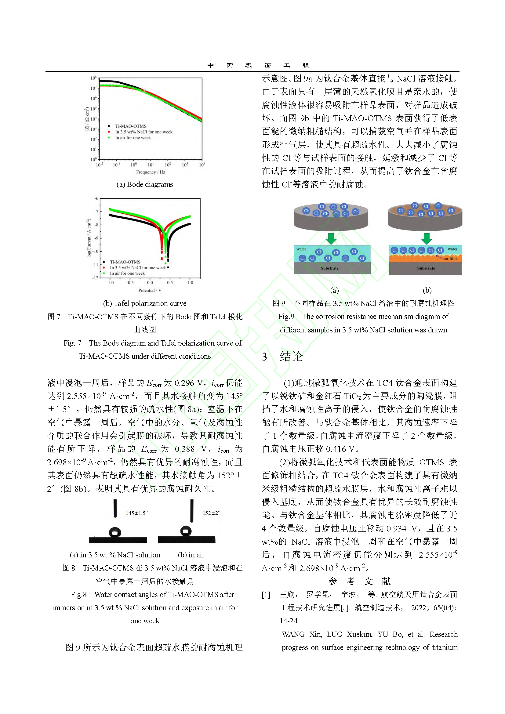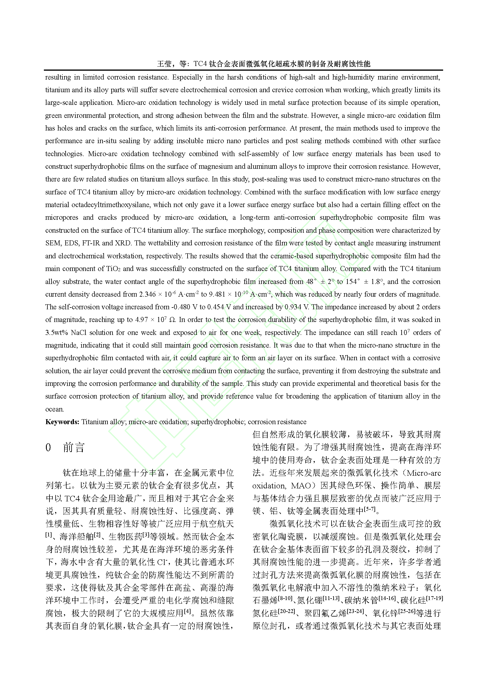 TC4 钛合金表面微弧氧化超疏水膜的制备 及耐腐蚀性能