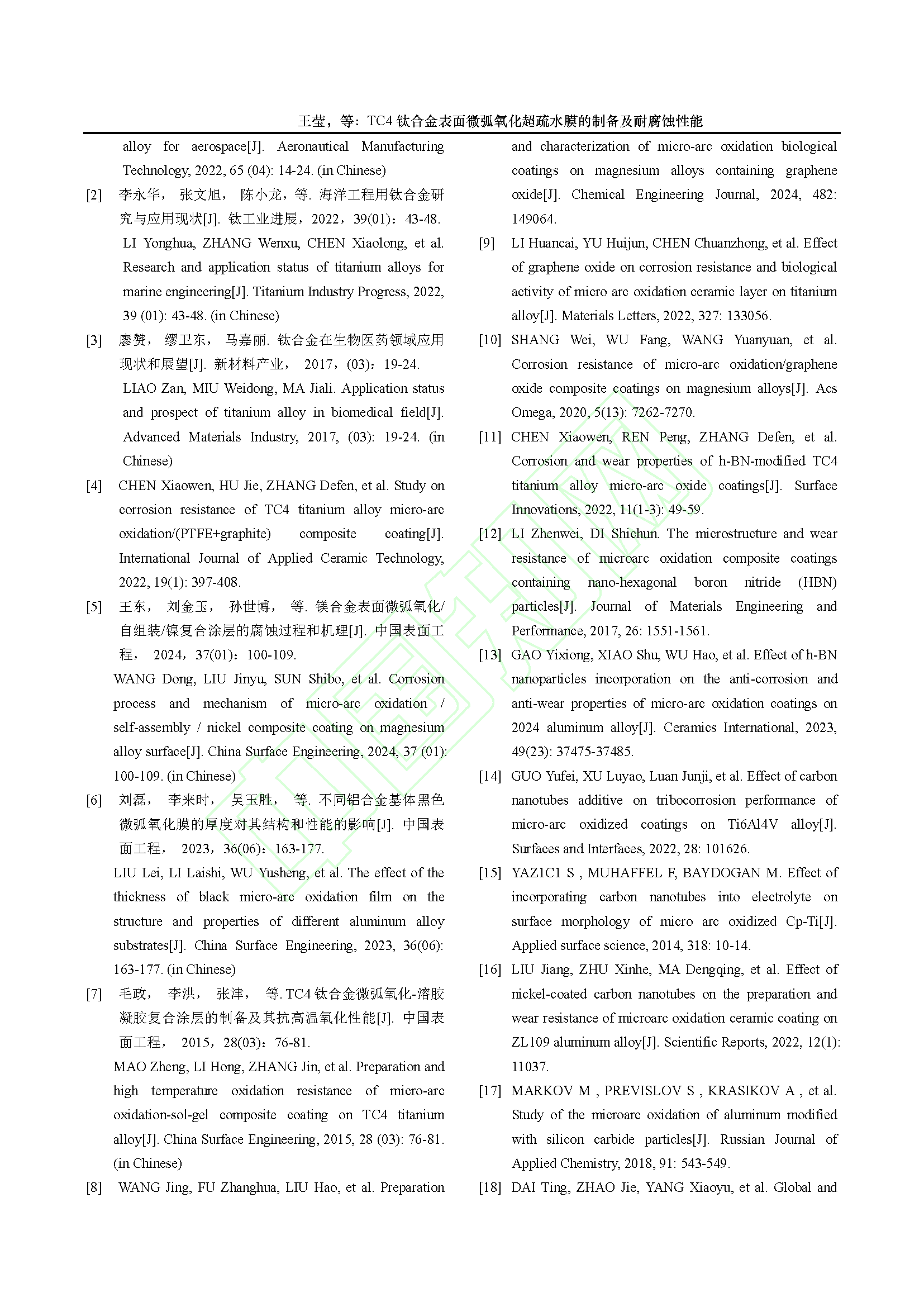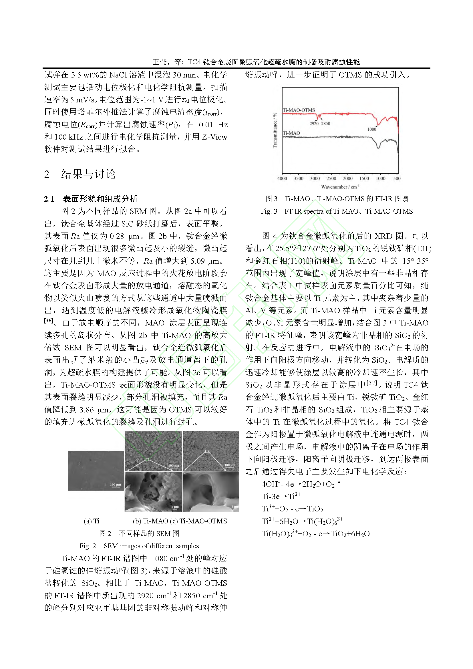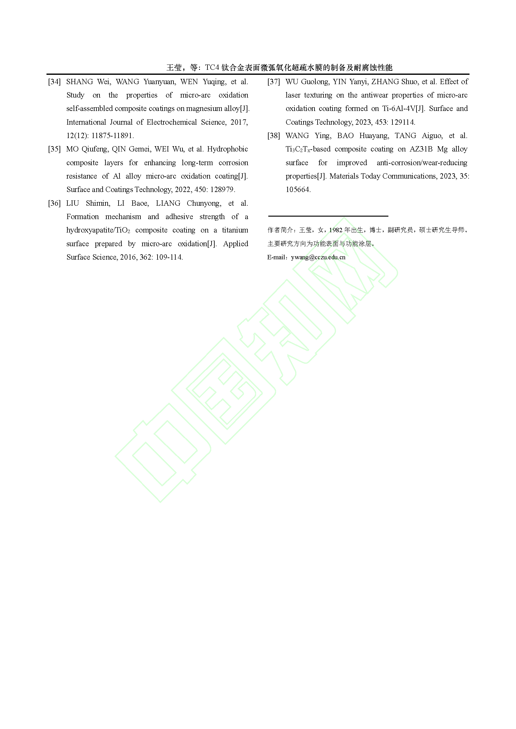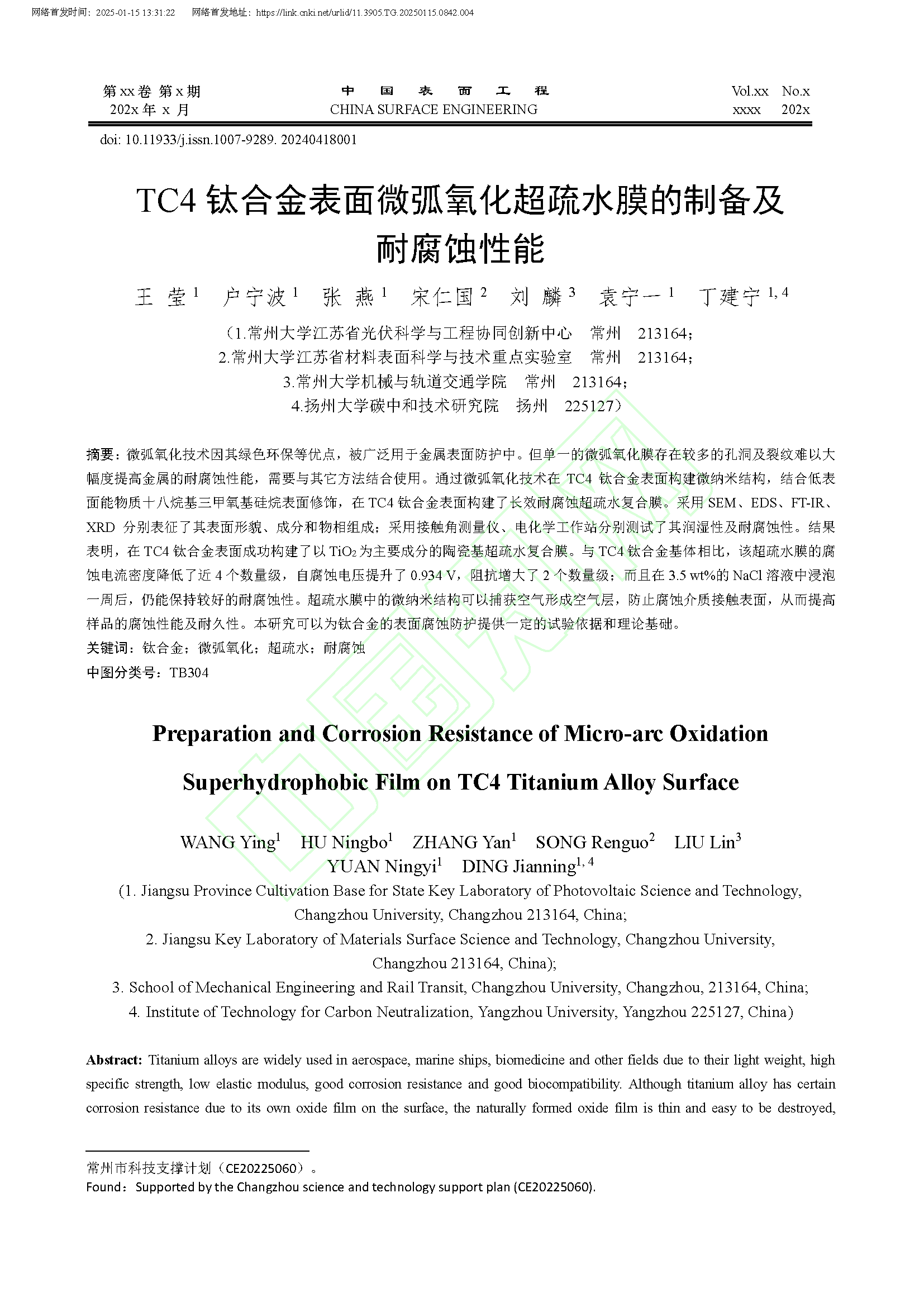TC4 钛合金表面微弧氧化超疏水膜的制备 及耐腐蚀性能