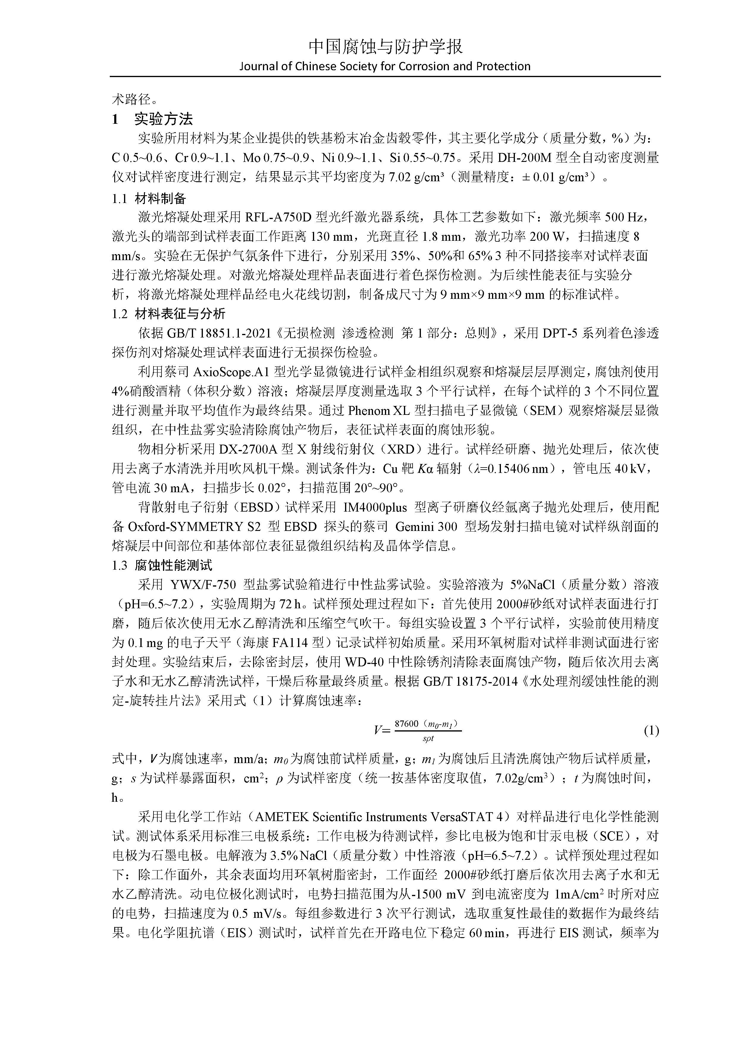 来源:中国腐蚀与防护学报