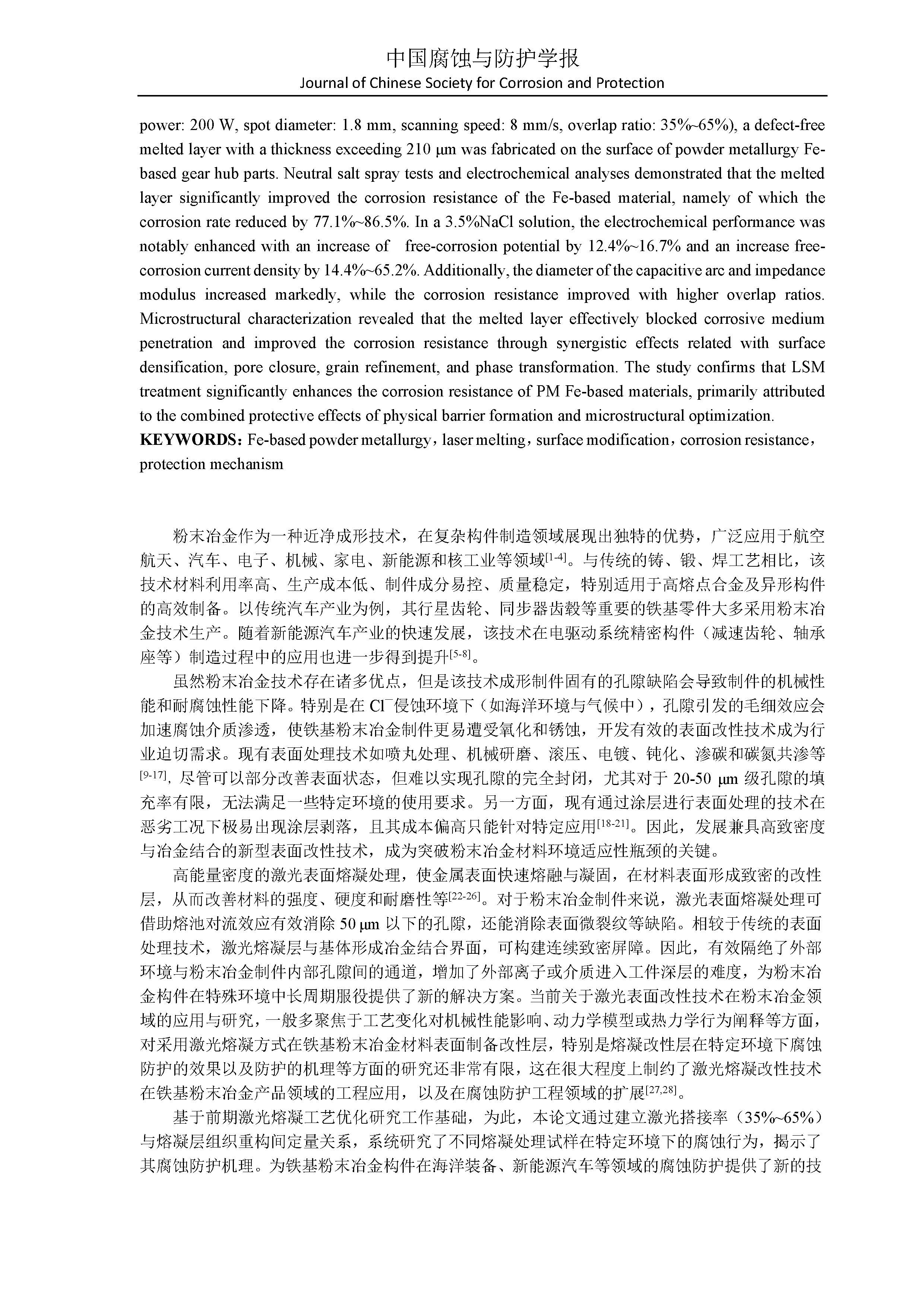 激光熔凝表面改性铁基粉末冶金材料腐蚀防护机理