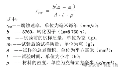 4.1均匀腐蚀速率计算公式(参考GB/T 7901-2023)