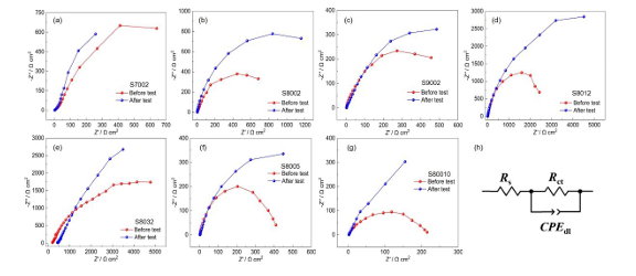 "采用模拟海洋大气环境的中性盐雾试验,结合电化学阻抗谱(EIS)测试、..."