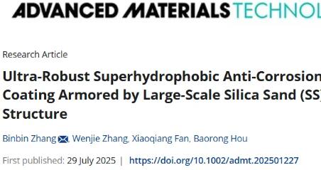 AMT | 中科院海洋所张斌斌:大尺度石英砂铠甲化设计构筑高机械稳定性超疏水防腐防冰涂层