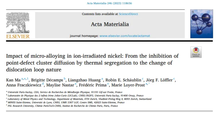 《Acta Materialia》丨微合金化对离子辐照镍的影响:从热偏析抑制点缺陷团簇扩散到改变位错环性质