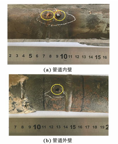 "华北某油田掺水管线环焊缝周围发生腐蚀穿孔失效。采用宏观形貌观..."