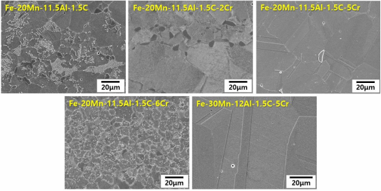 图 4 基于Fe–(20–30)Mn–(11.5–12.0)Al–1.5C合金微观组织随着Cr含量的增加而变化。(图片来源:《科技报告》)