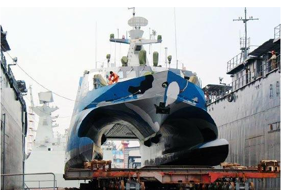 022导弹艇采用了双体穿浪式设计