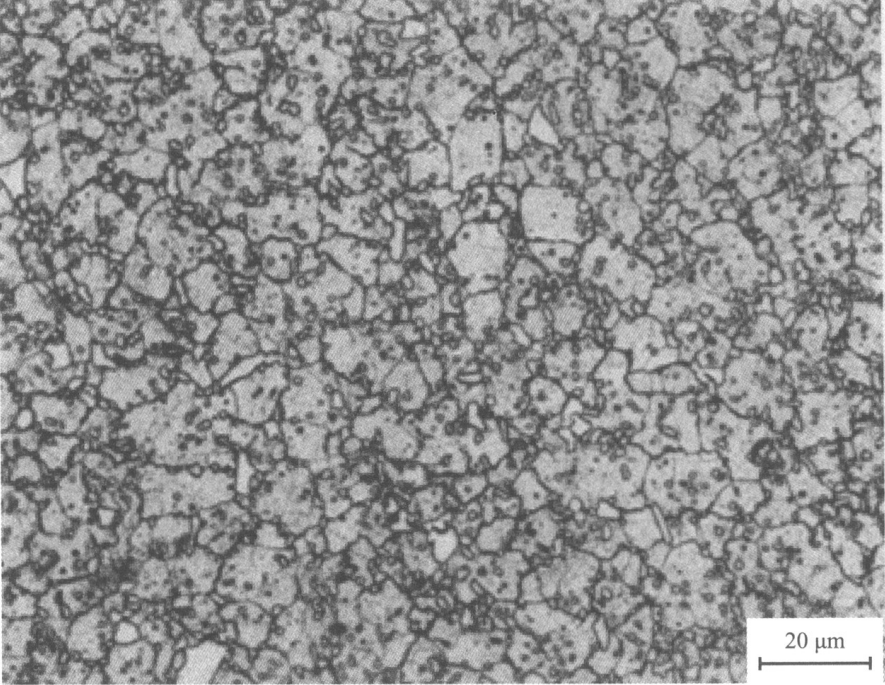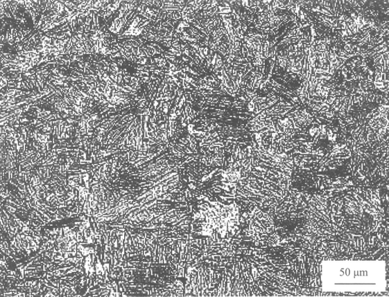 图25为71Crl锯片用钢的锻后珠光体组织。该钢的主要成分为:w(C)=0.75%,w(Mn)= 0.64%,w(Cr)=0.39%,确认该钢是含有少量合金元素的共析钢。该钢锻造后空冷可得片状珠光体组织,由铁素体+渗碳体两相组成。