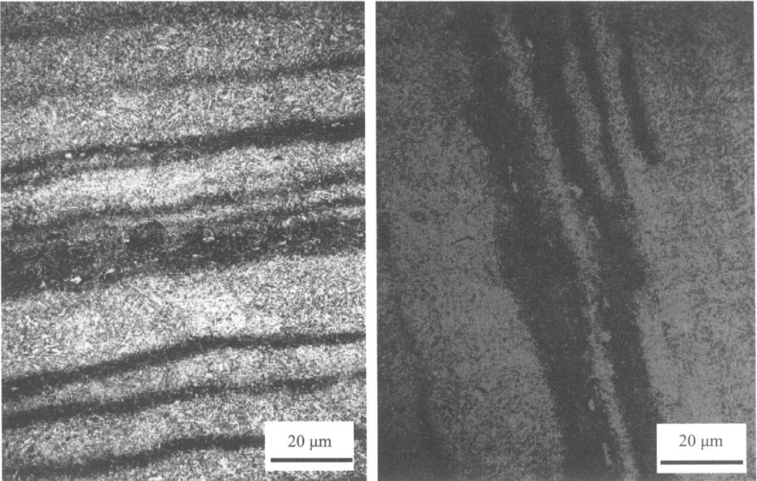 图3(a)所示为 GCr15钢在 950℃加热奥氏体化,然后于450℃等温,得到羽毛状上贝氏体组织,可见酷似片层状的珠光体 ;与图3(b)中的共析钢的片状珠光体组织比较 ,颇有相似之处。