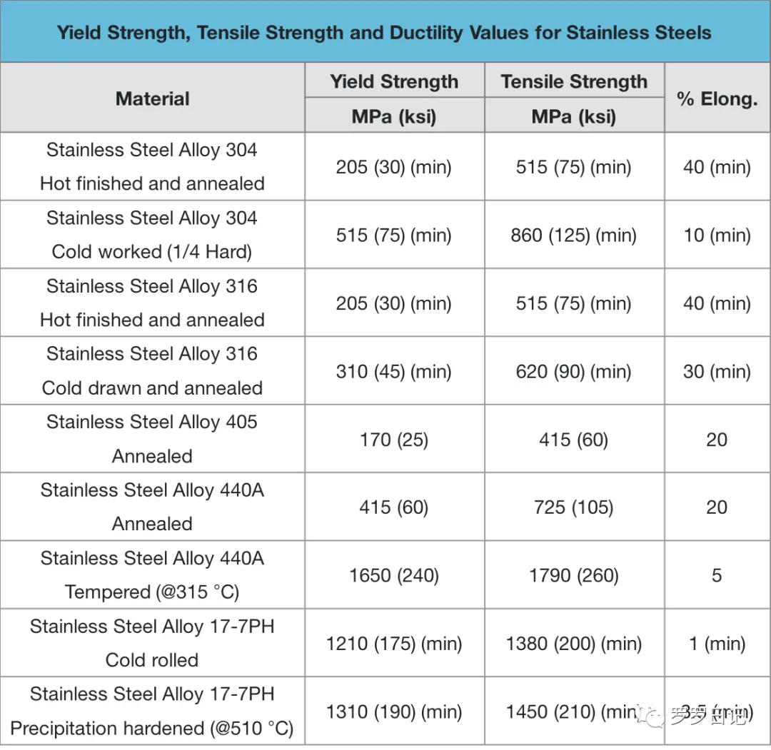 不锈钢的屈服强度,抗拉强度,延展性