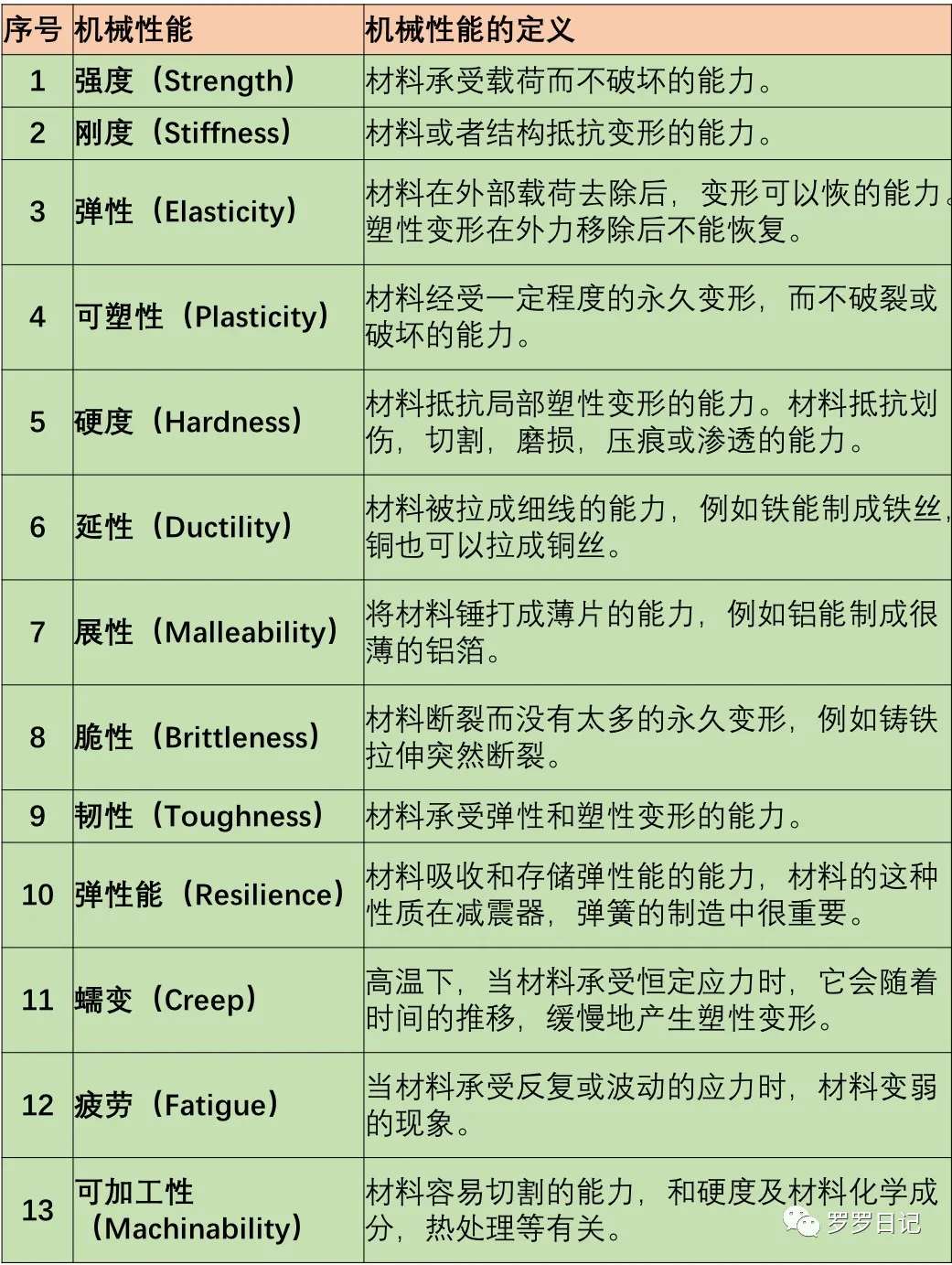 先上图,说说这张表里的13个材料性能。
