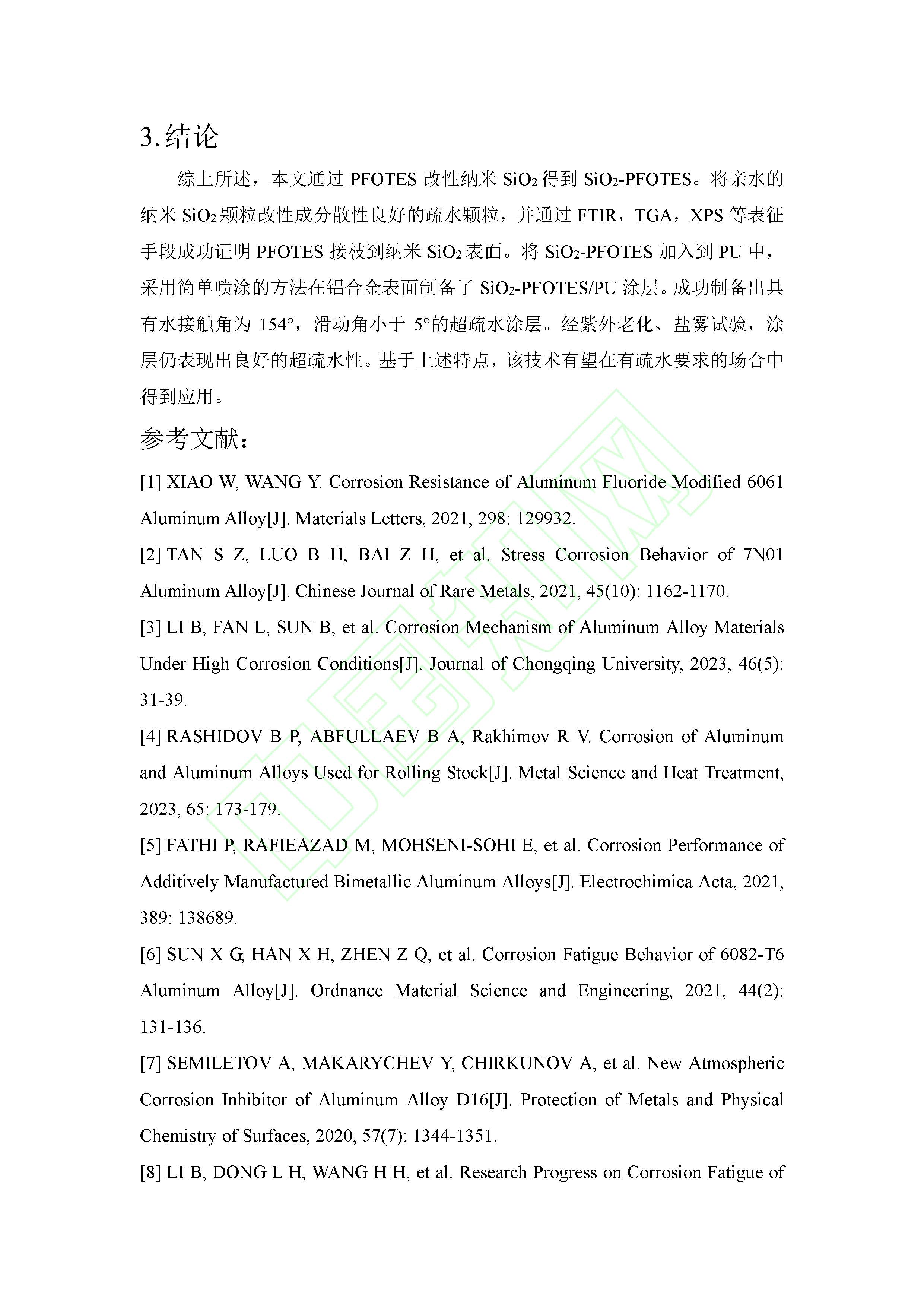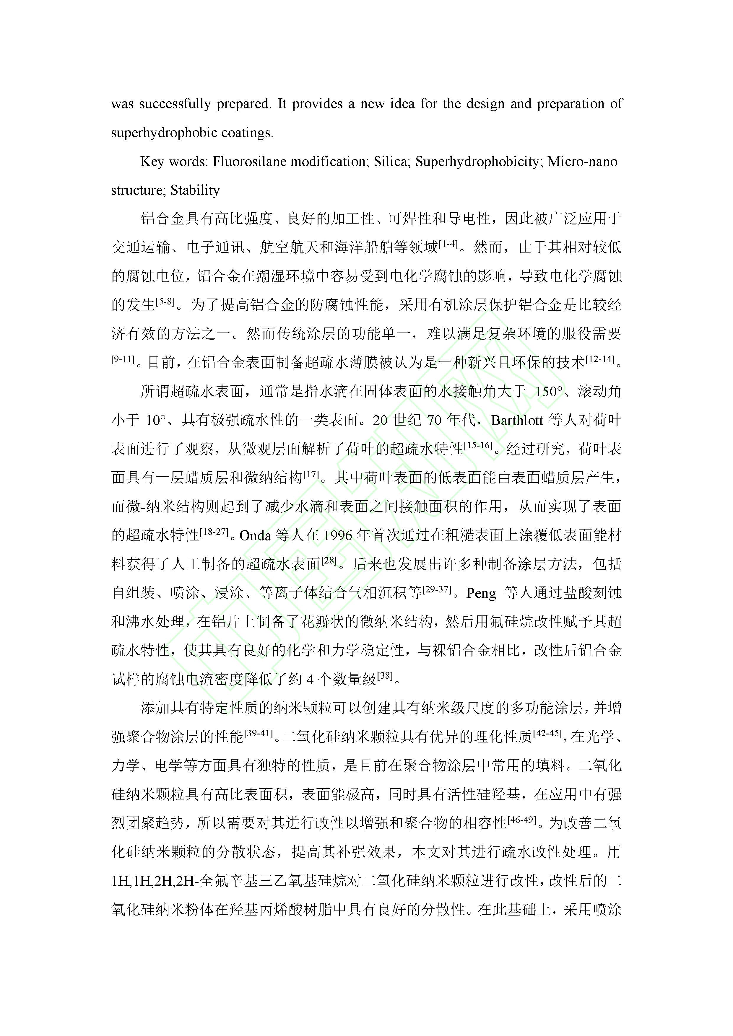 铝合金表面氟硅烷改性纳米二氧化硅超疏水耐蚀涂层的制备和表征