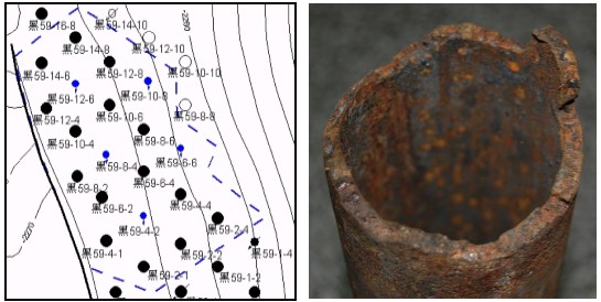 " 大港土壤腐蚀试验站针对埋设在大港土壤腐蚀站的系列球墨铸铁管涂层试样进行开挖检测试验,分析土壤理化性能,研究不同涂层在相同土壤环境中腐蚀状况,包括涂层颜色与光泽变化、"