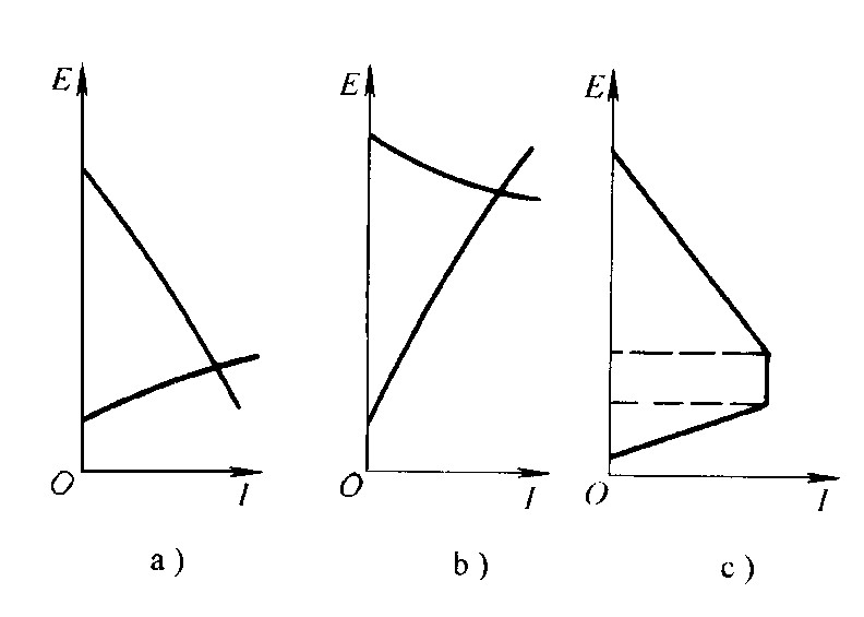 在不同土壤条件下腐蚀电池的控制特征:对于大多数土壤来说,当腐蚀决定于腐蚀微电池的作用时,腐蚀过程强烈地为阴极过程所控制(图1-a),这和完全浸没在静止电解液中的情况相似;在疏松干燥的土壤中,腐蚀过程转变为阳极控制占优势(图1-b),这时腐蚀过程的控制特征类似于大气腐蚀;对于由长距离宏电池作用下的土壤腐蚀,如地下管道经过透气性不同的土壤形成氧浓差腐蚀电池时,土壤的电阻成为主要的腐蚀控制因素,其控制特征是阴极-电阻混合控制或者是电阻控制占优势(图1-c)。