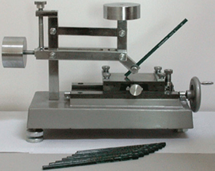 铅笔硬度试验是一种非常简单而又实用的硬度评定方法。用硬度递降的几支铅笔(有6H至6B),用手写或机械划写,从最硬的铅笔开始,每种铅笔在涂膜上划3mm长的5道划痕,直至5道划痕都不梨伤涂膜的铅笔为止。此铅笔的硬度即为该涂膜层的铅笔硬度。