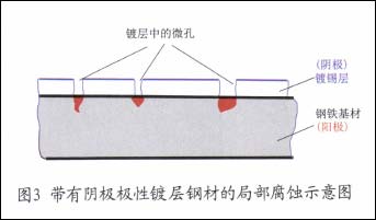 (1)金属材料本身具备局部腐蚀发生的条件,例如,镀锡层的钢铁,如图3所示。