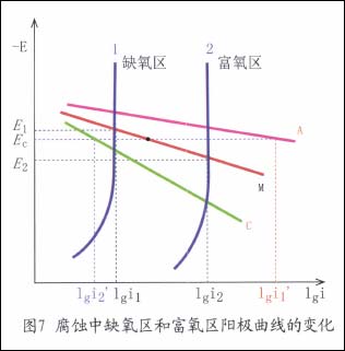 供氧差异电池引起腐蚀的腐蚀极化图解见图7。