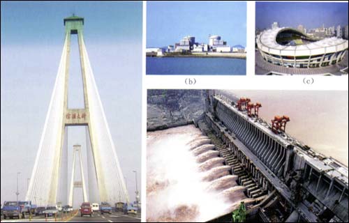 水性重防腐涂料的应用实例较多,遍及国内外,行业应用面广泛。如上海徐浦大桥(图3a)、秦山核电站(图3b)、上海体育场(图3c)采用的是水性硅酸锌重防腐涂料,三峡水电站(图3d)用水性聚氨酯-环氧-丙烯酸改性重防腐涂料。