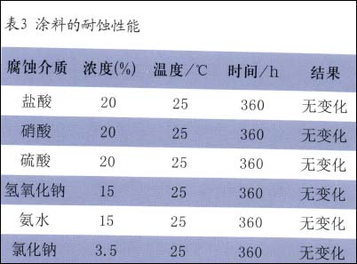 (3)防腐底漆耐蚀性能。为了检测防腐底漆的耐蚀性能,将涂层浸泡于不同介质溶液中,观察并记录其变化,结果如表3所示。