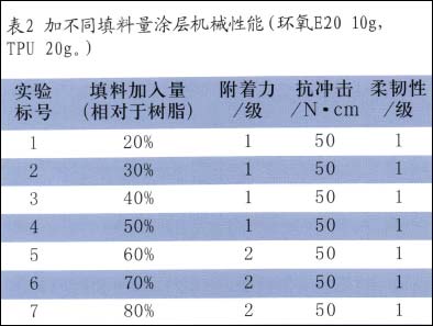 表2 加不同填料量涂层机械性能(环氧E2010g,TPU20g。)