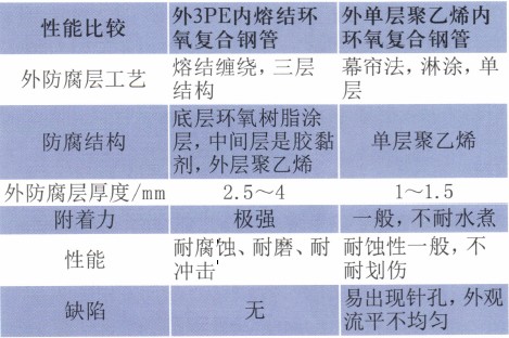 表2外三层结构聚乙烯(3PE)防腐与外单层聚乙烯(PE)防腐区别