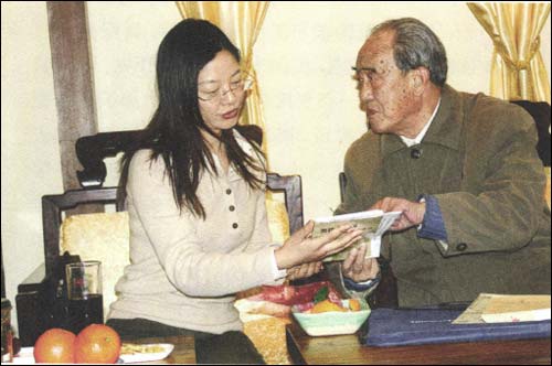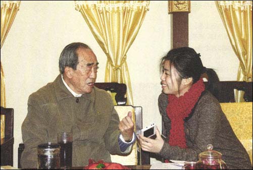 肖纪美院士向本刊负责人雷有艮女士详细地解释类比与交叉,在材料科学中引入人文学科的教学体会。
