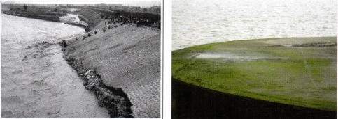 混凝土结构具有高粗糙度、多孔性、亲水性和高碱性特点,长期与环境侵蚀性介质(例如地下水、河水和湖水)接触,就会造成混凝土中的可溶性成分(例如Ca(OH)2逐渐溶解、流失,使混凝土强度逐渐降低,pH值不断减小,混凝土结构的孔隙率逐渐增大,并逐渐促使和加速溶解腐蚀,也会为其它腐蚀性介质的渗入营造出更多的无障碍通道。经过不断的恶性循环,最终导致混凝土结构破坏。