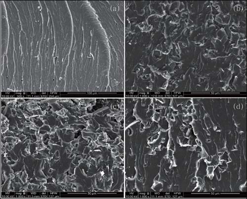 图7 石墨烯防腐复合涂层的内部结构。(a)纯环氧树脂,(b-d)不同含量石墨烯。