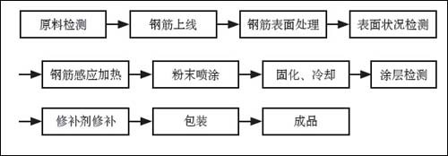 高性能环氧涂层钢筋涂装工艺流程的简要说明: